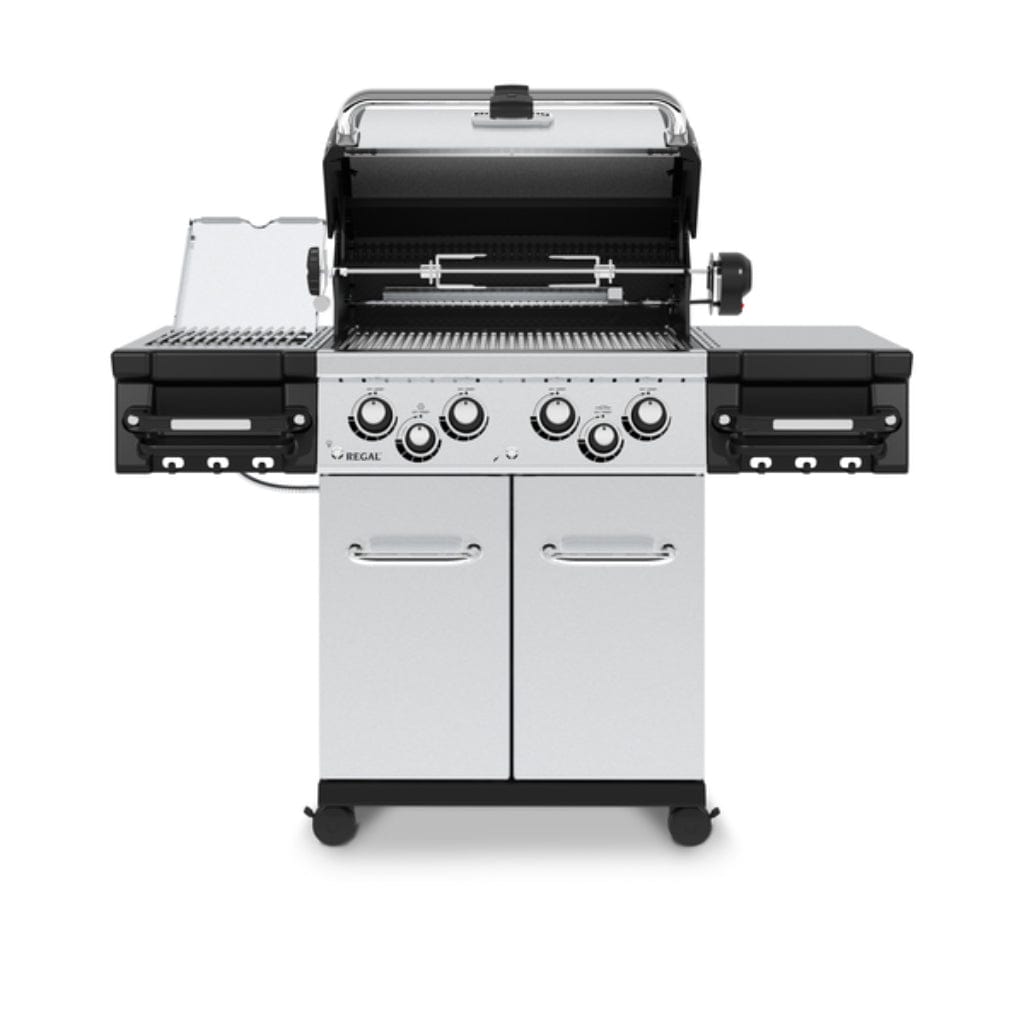 The Regal™ S 490 Pro IR features 695 sq. in. total cooking space including the stainless steel warming rack. It also has solid 9 mm stainless steel cooking grids, the stainless steel Flav-R-Wave™ cooking system, four stainless steel Dual-Tube™ burners, stainless steel side shelves, illuminated control knobs, and an enclosed cabinet base. The powerful infrared side burner has a solid 9 mm stainless steel cooking grid and an aluminum body.