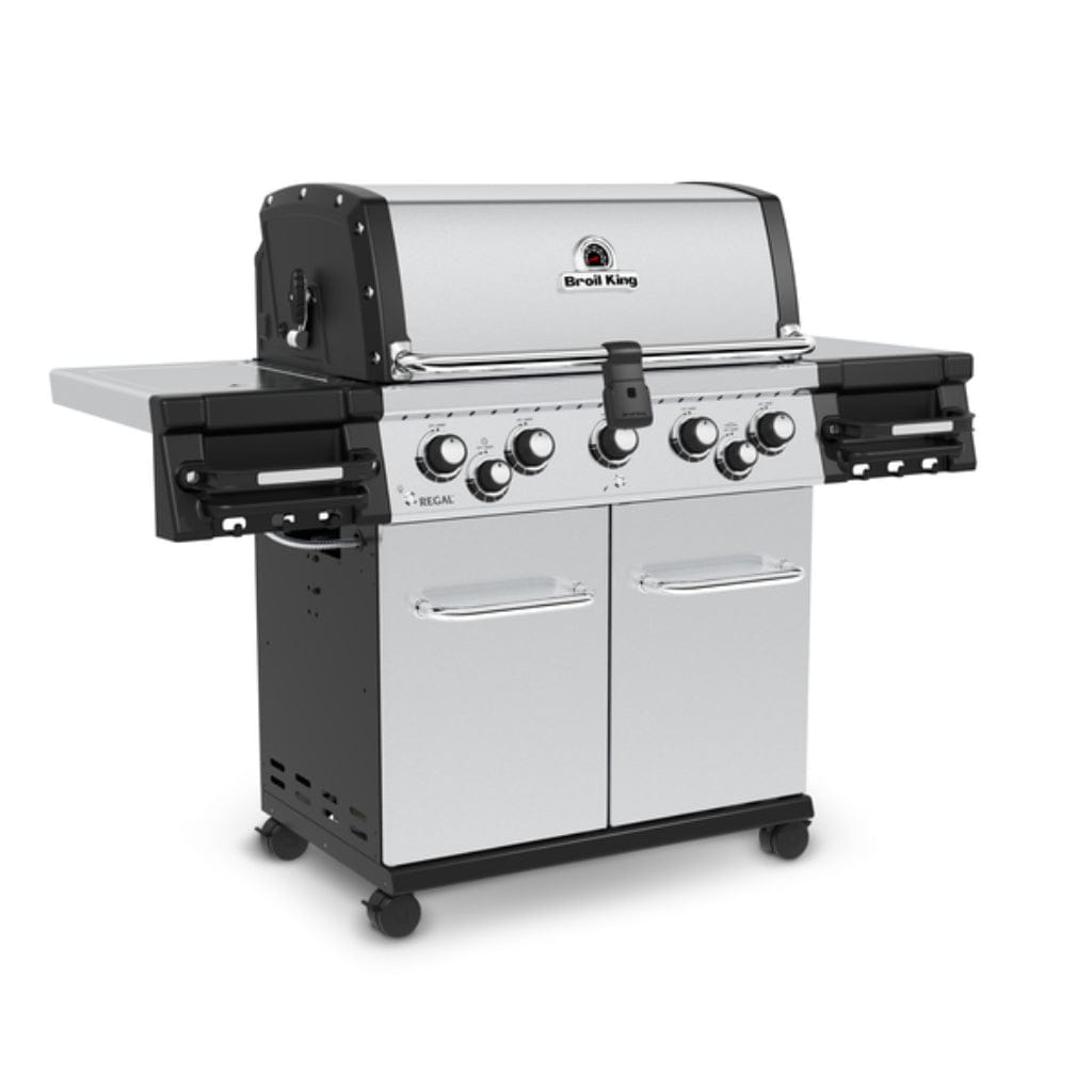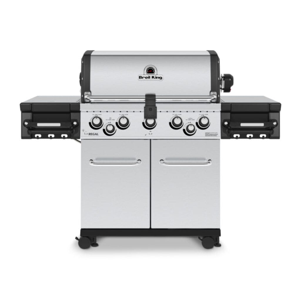 The Regal™ S 590 Pro features 875 sq. in. total cooking space including stainless steel warming rack, solid 9mm stainless steel cooking grids, stainless steel Flav-R-Wave™ cooking system, 5 stainless steel Dual-Tube™ burners, stainless steel side shelves, illuminated control knobs, and an enclosed cabinet base.