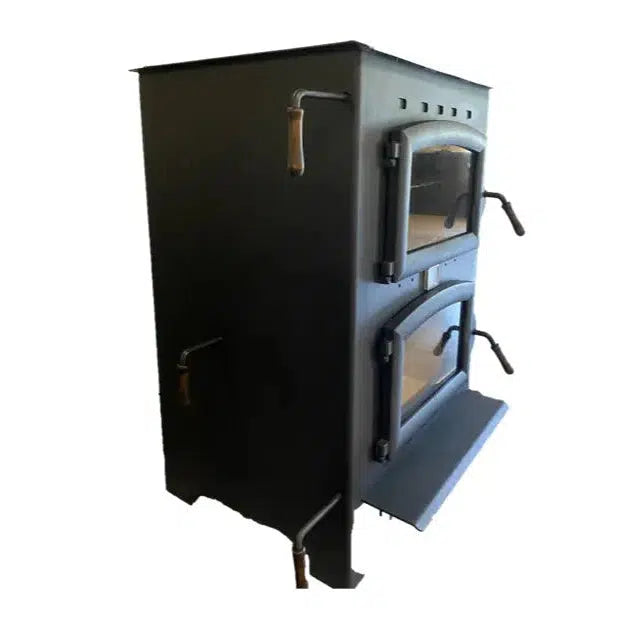 - Dual air control handles provide precision control of the heat of the oven and of the fire.