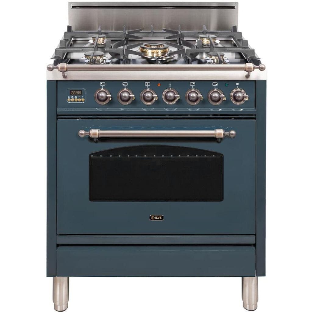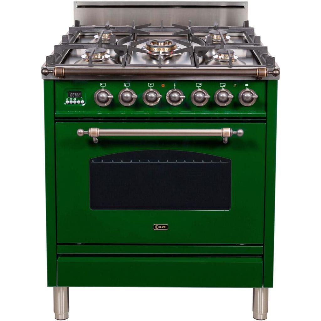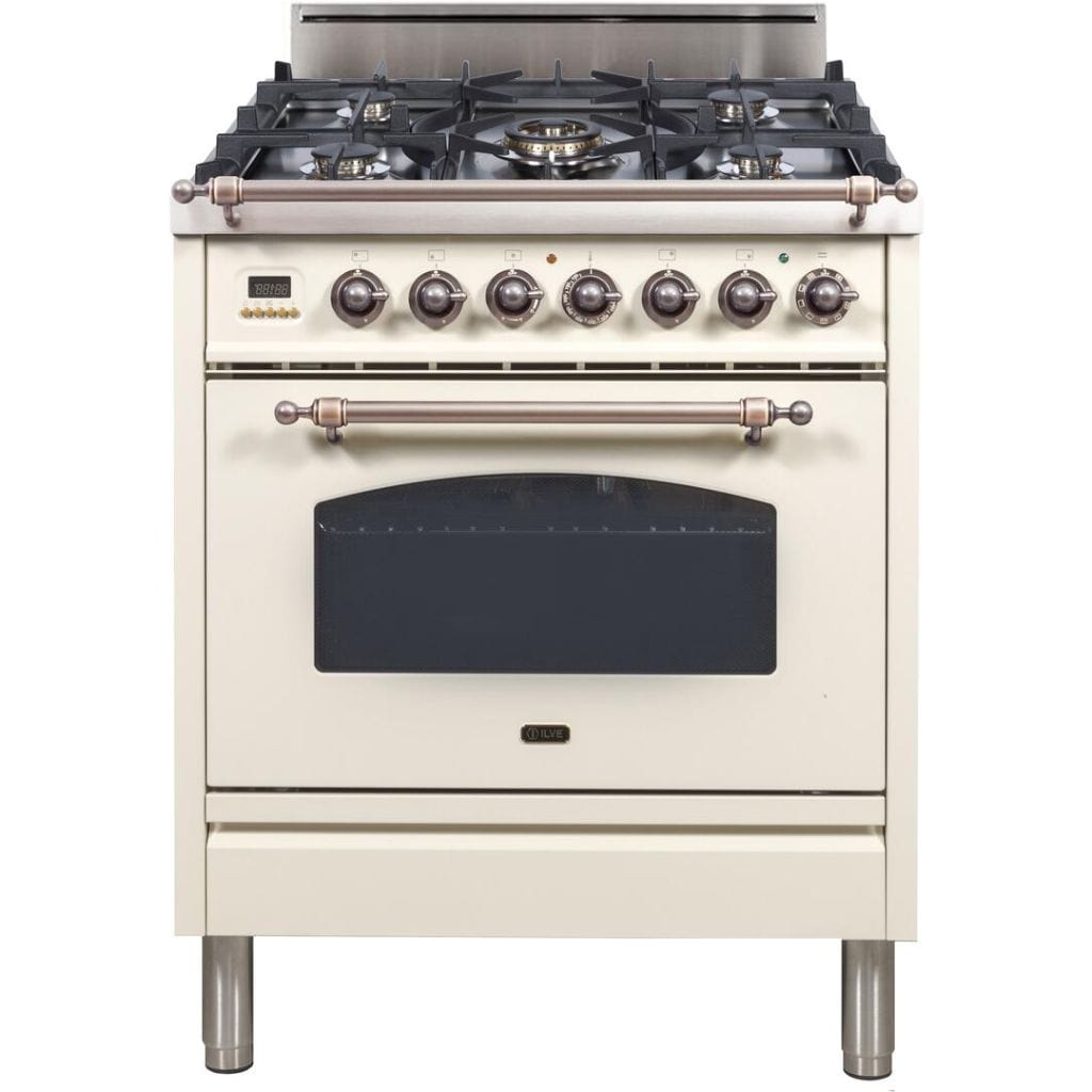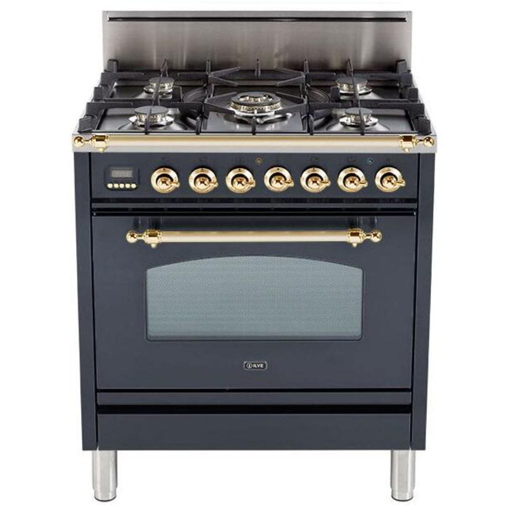 Nostalgie Series 30 Inch Freestanding All Gas Range with, 5 Sealed Burners, 2.7 cu. ft. Total Oven Capacity, Convection Oven, Viewing Window, Continuous Grates, Storage Drawer, True European Convection, Handcrafted from Italy, High-End Workmanship, Dual Function Triple Ring Burner, Gas Conversion Kit Included with Trim