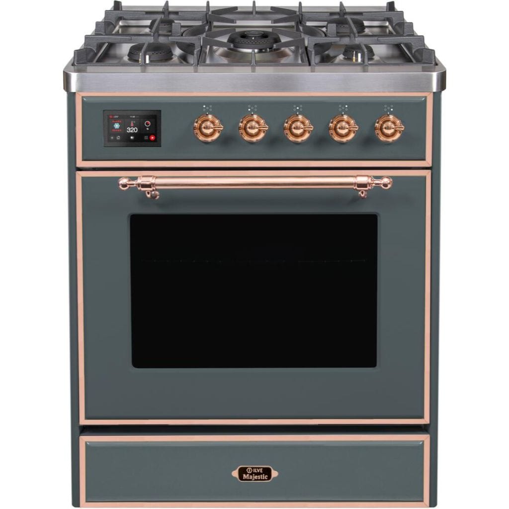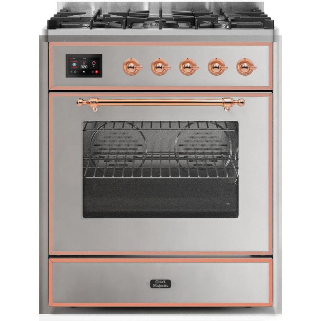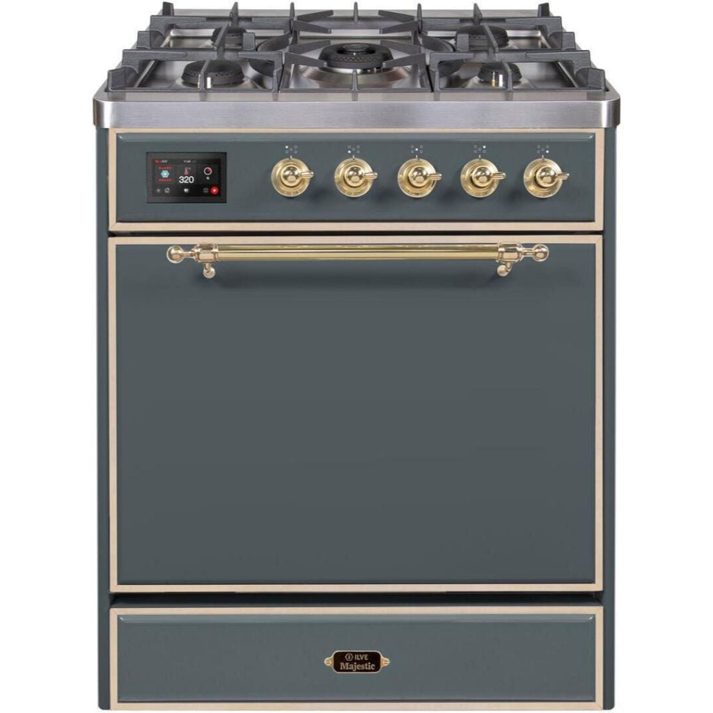 ILVE 30” 5 Sealed Burners Majestic II Series Freestanding Dual Fuel Natural Gas Range with Trim