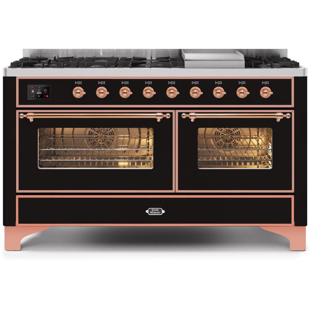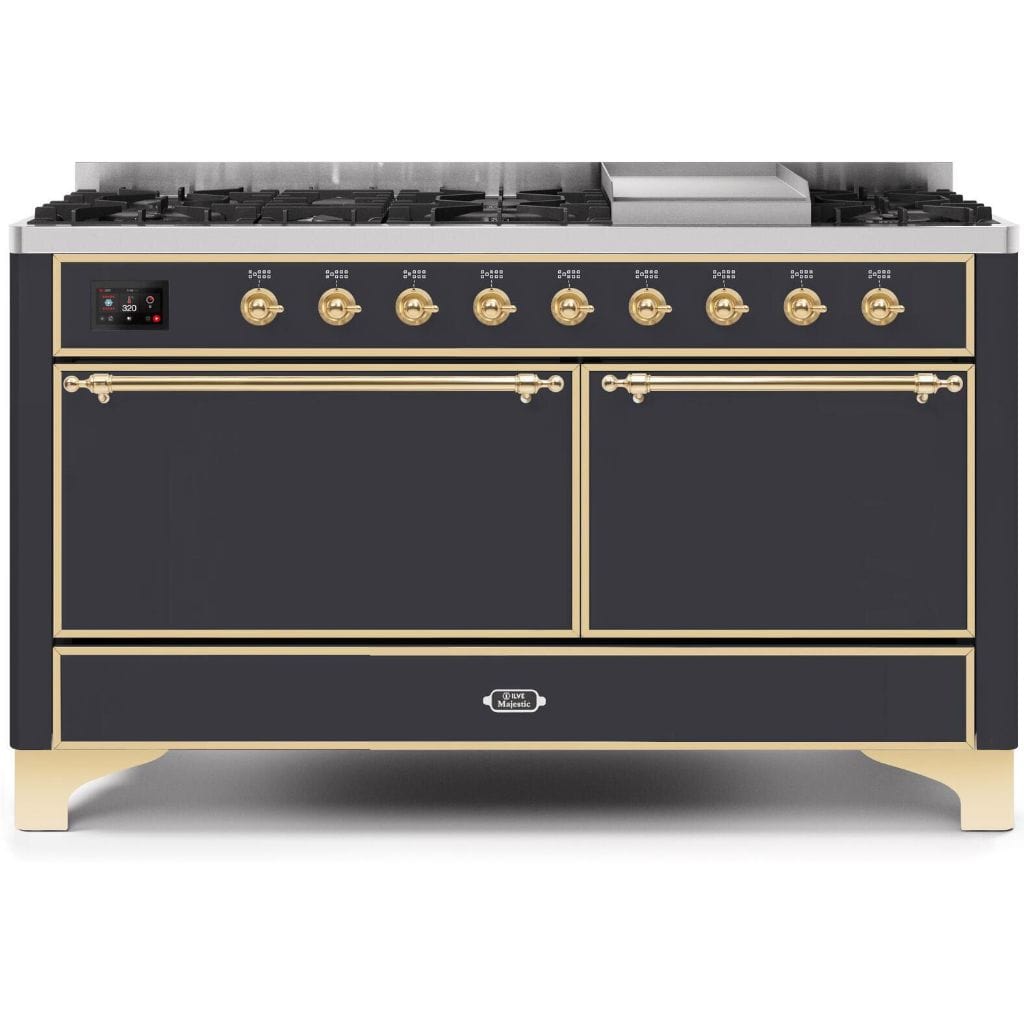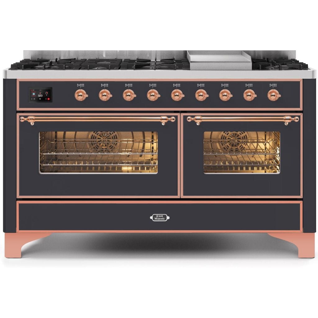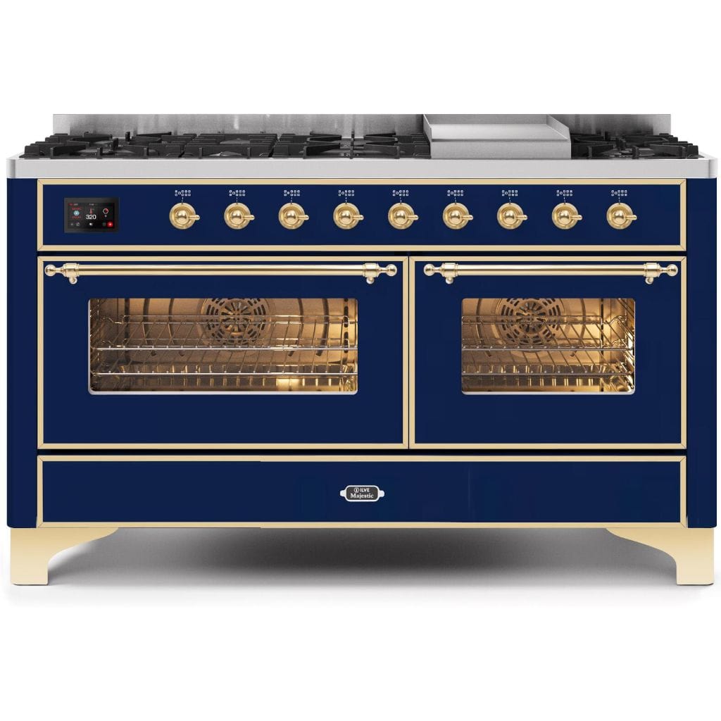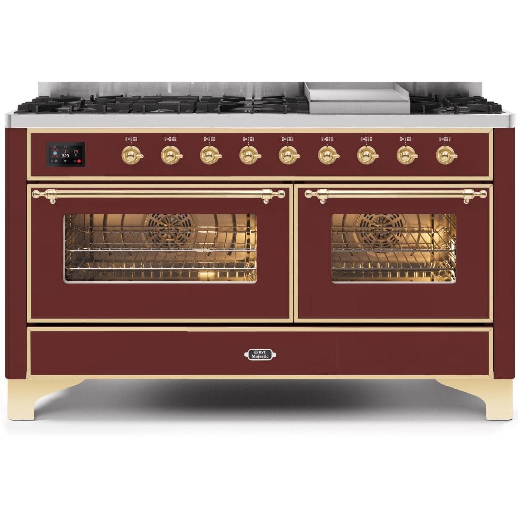 Majestic II Series 60 Inch Freestanding Dual Fuel Range with Liquid Propane, 9 Sealed Burners, Double Ovens, 5.02 cu. ft. Total Oven Capacity, Griddle, Convection Oven, Self-Clean Oven, Continuous Grates, Viewing Window, Warming Drawer, Oven: Defrost Function, Gas Conversion Kit Included, TFT Oven Control Display, Nano-Tech Non-Stick Coated Burners, Handcrafted from Italy, High-End Workmanship, Rotisserie, Interchangeable Griddle with Burner Grate with Trim