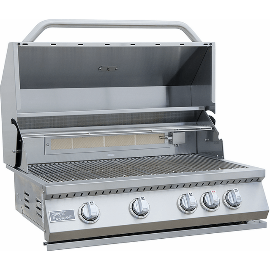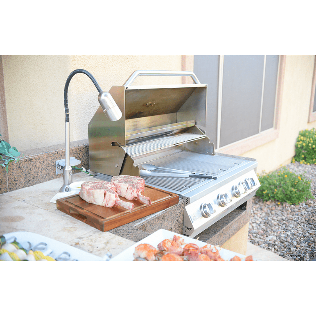 Entertain and barbecue four Burner 32" Built-in BBQ Grill with family and friends at your outdoor kitchen area. This Built-in BBQ grill has complete control with 4 independent heat controls for indirect cooking and 1 control knob for the Infrared Rotisserie back burner.