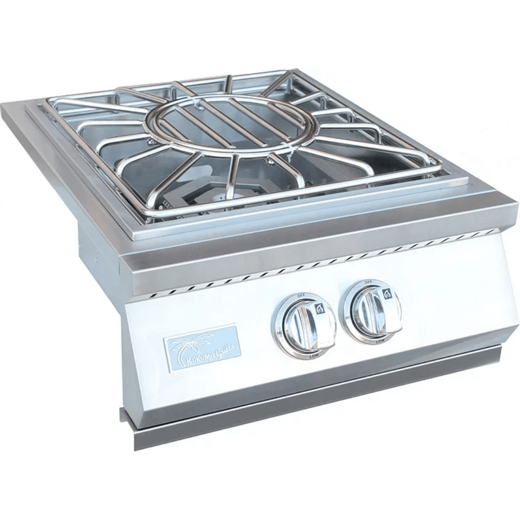 Conventional, Stainless, Natural Gas/Propane, Built-In. The stainless steel cover protects the burner when not in use and features a curved handle to match other Kokomo products. Ignition is created easy with push and turn knobs that provide a reliable flame with every start “Sure Light System” and therefore the full-width drip tray makes clean up a breeze. If you're looking to make a gourmet outdoor meal complete with soups or side dishes, a power burner is a perfect addition to your outdoor kitchen.