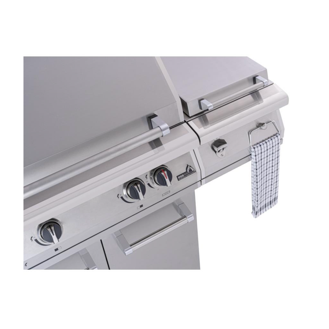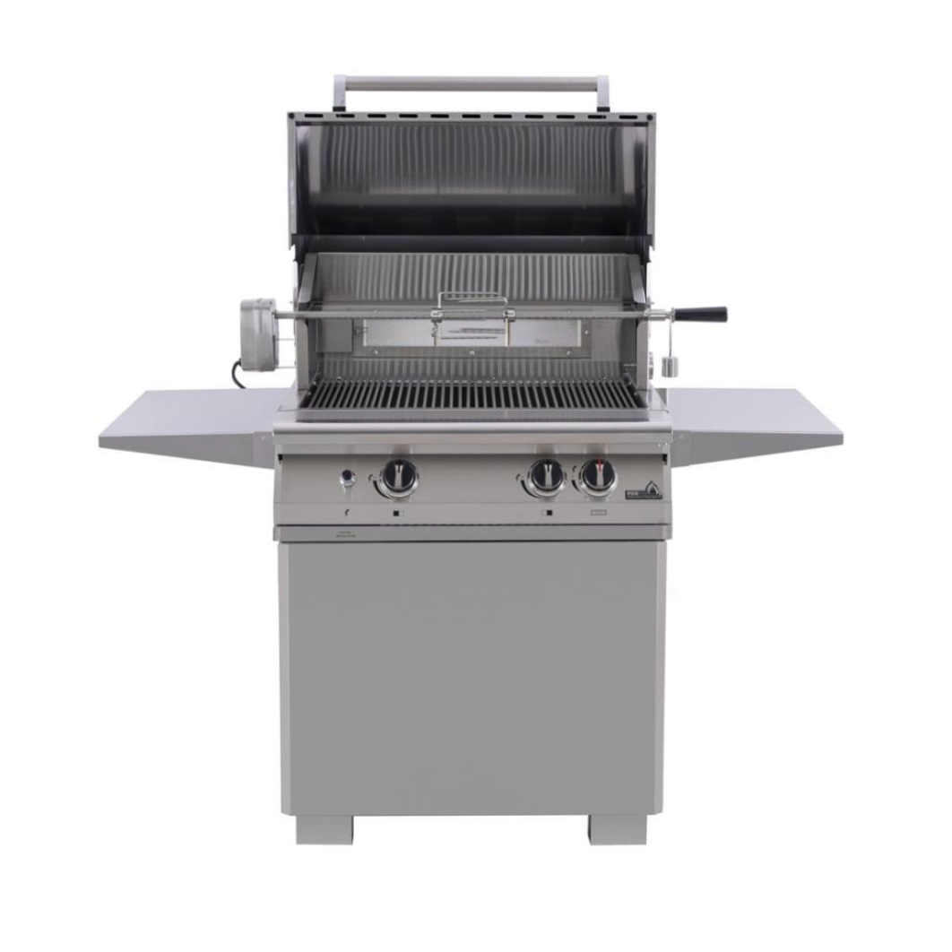 The Legacy Newport S27TLP Commercial Grill features all stainless steel construction, 540 sq. in. of commercial grade stainless steel cooking area, electronic ignition, two burners with a total rating of 45,000 BTUs, laser etched markings on the control panel, anti-theft knobs and a PGS FuelStop® one hour gas flow timer built right into the control panel. The S27TLP can be built directly into a masonry enclosure or used on our portable cart item #S27CART. The entire grill and its components carry a one year full parts repalcement warranty when used in a commercial application (an industry first!). Models have a full array of matching accessories available such as doors, drawers and beverage centers. ETL/Intertek Certified.