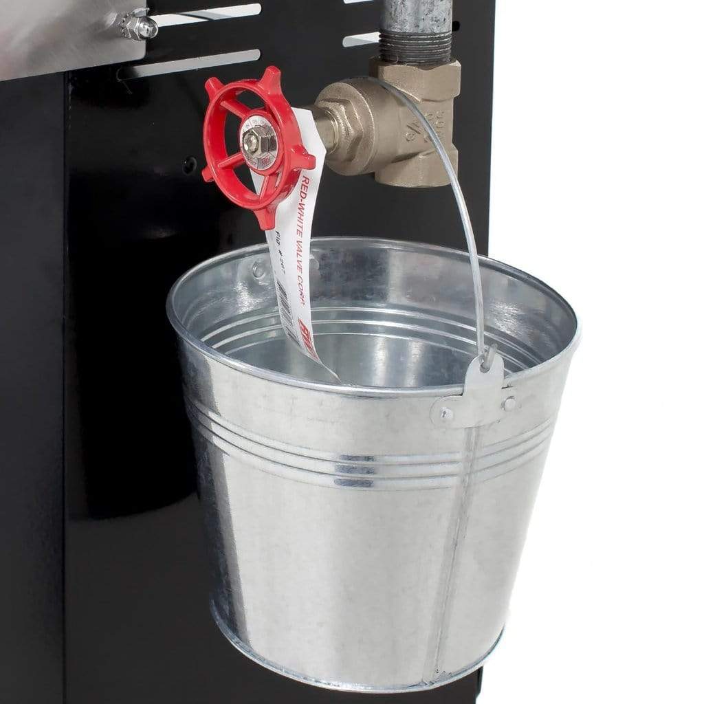 Solid Brass Valve & Bucket Solid Brass Valve and Bucket provide easy draining & disposal of the drip pan’s fluids. |