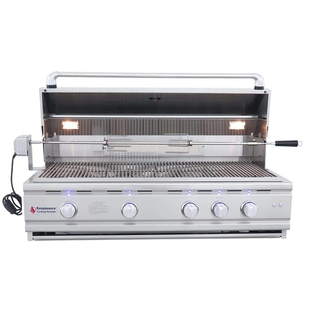The RCS Cutlass Pro Series of outdoor grills are designed for the weekend cook as well as the professional chef. With cast stainless steel burners, solid stainless steel rod cooking grids and warming rack, plus the 304 stainless steel housing, these grills will provide you with many years of great-tasting food. Other quality features include the rear infrared rotisserie burner with motor, spit rod with two 4 prong forks, heat zone separators, interior halogen lights, LED illuminated control knobs and a full width slide-out drip tray. Also included is a sure strike ignition system, which is the most reliable in the industry. Optional infrared searing burner upgrade is available! These grills are gorgeously sophisticated, yet very simple to operate.