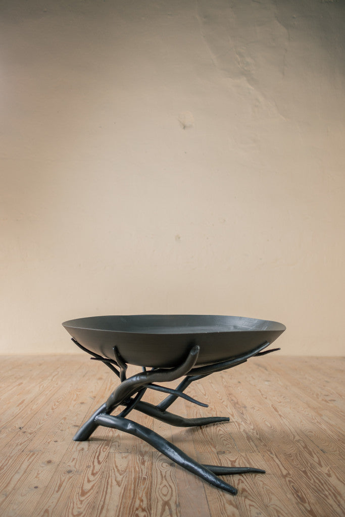This unique fire pit features a large 30" bowl perched on a beautiful, hand-forged branch frame. inside the bowl, you'll find a grate crafted from iron sticks to keep your logs elevated.