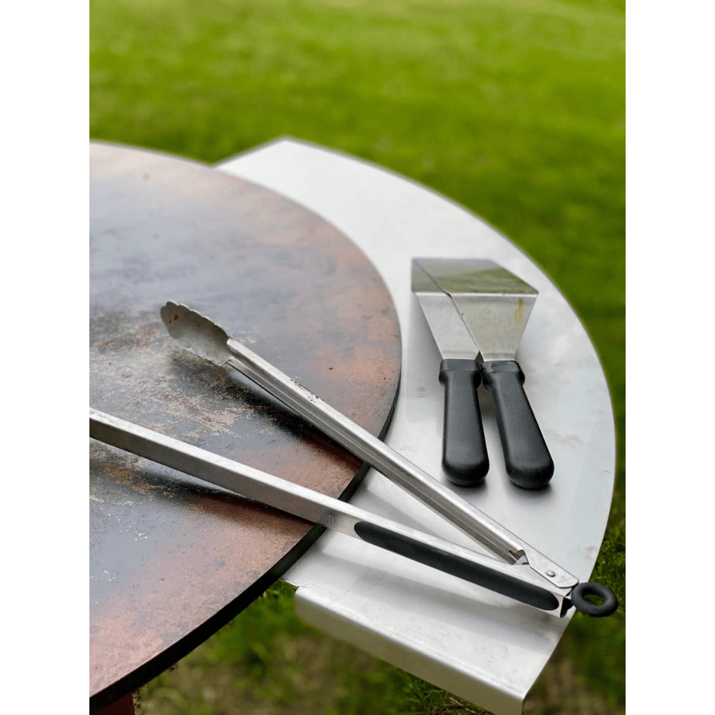 Arteflame is the leading American manufacturer of charcoal and wood fire grill griddle (plancha) combination outdoor barbecue grills and fire pits. Built exceptionally solid, they are designed to last for years and years with little to no maintenance. When you buy an Arteflame grill, fire pit or griddle grill combination insert (grill grate replacement plancha) for your barbecue, you are buying barbecue products that are 100% made in the America. Arteflame is known for making solid steel grill griddle combination cooktops that make grilling easy and fun. Whether you are grilling on the plancha style griddle, searing over the fire on the grill grate, using the rotisserie or the pizza oven, there are many ways to grill your food to perfection on an Arteflame grill. Arteflame cooktops are made of extra thick carbon steel while the grill bodies are made entirely of Corten steel. Corten steel is also called “weathering steel” and is used in many outdoor structures like buildings, bridges and architectural works of art that live outside. Each grill develops a unique, gorgeous patina that is ever changing. Arteflame grills have an airflow system that is completely internal without any moving parts or adjustments. This airflow generates more heat with. minimal smoke while using less wood and charcoal than other barbecues in its class. Because the cooktop can be taken off, every Arteflame grill easily converts into a fire pit. (Lifting tool included) Arteflame style grilling is also known as Mongolian, Korean, Hibachi, Plancha or Teppanyaki style grilling. Griddle grill combination inserts allow you to grill Arteflame style on your barbecue by replacing your existing grill grate. Replacing your grill grate with a grill griddle combination Arteflame insert gives you the flexibility of adding countless other foods to your cooking and grilling repertoire. Griddle grill grate replacement inserts fit most popular grills like; akorn, kamado, oklahoma joe, joe classic, big joe, green egg, napoleon, traeger, weber, weber summit, genesis, blackstone and most gas grills and other charcoal barbecues. All Arteflame griddle grill cooktops, grill grates, replacement grill grate inserts and the awesome little burger pucks are made of extra thick carbon steel and season just like cast iron cookware. Cooking on seasoned carbon steel or cast iron is regarded as the “gold standard” for preparing the best tasting food possible. Arteflame griddle grill combination cooktops will last a lifetime and are not brittle or prone to cracking like cast iron. Get your Arteflame and see what you’ve been missing in your back yard all of these years. Invite friends and family and you'll see why the Arteflame is called "The Social Grill"!.