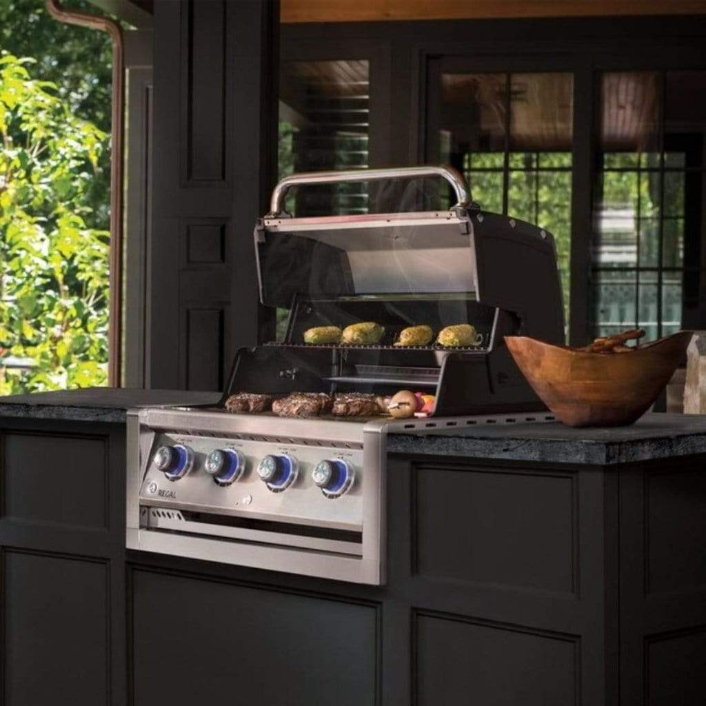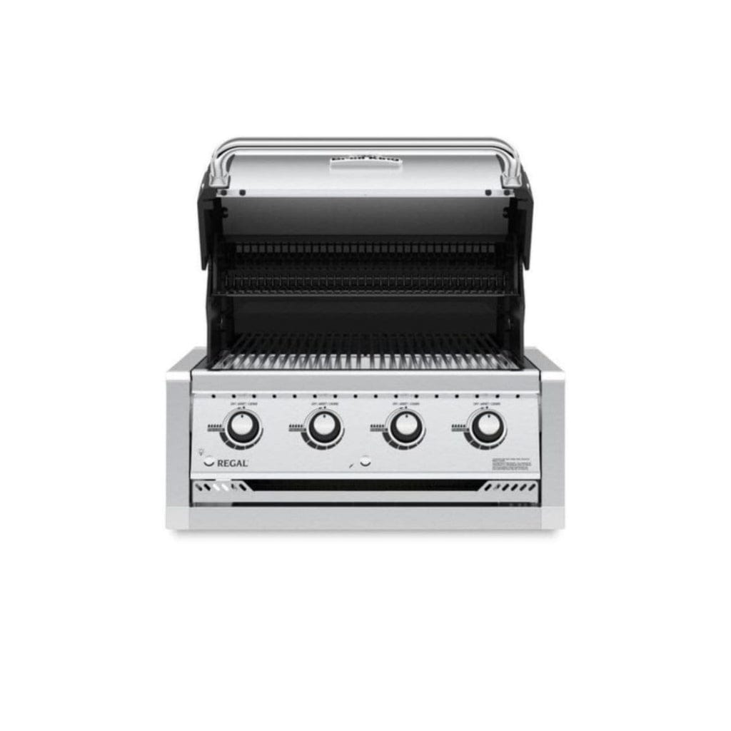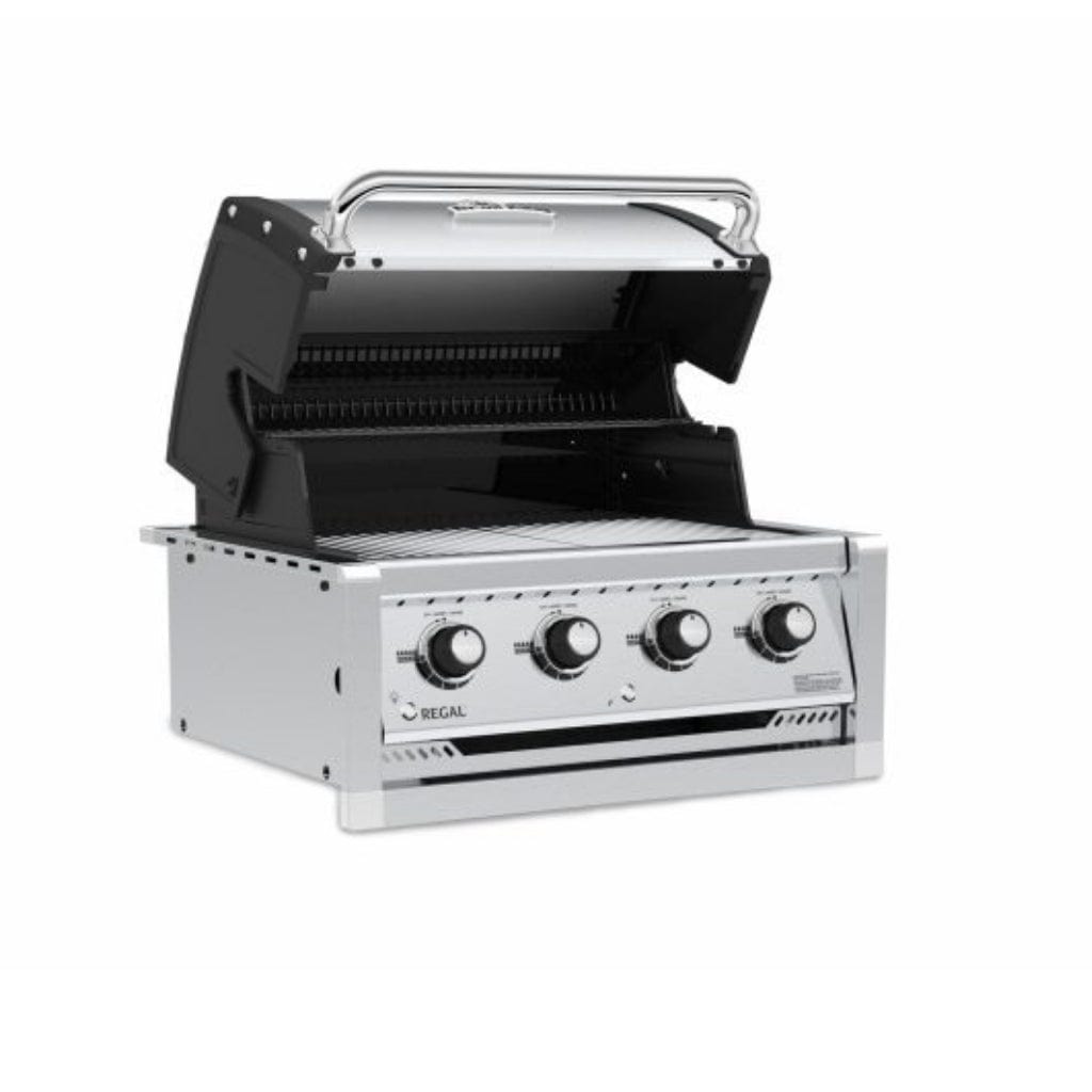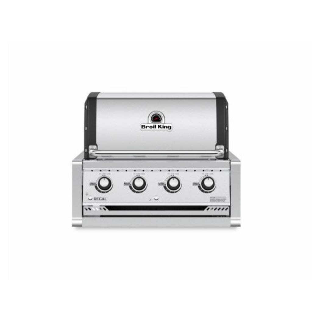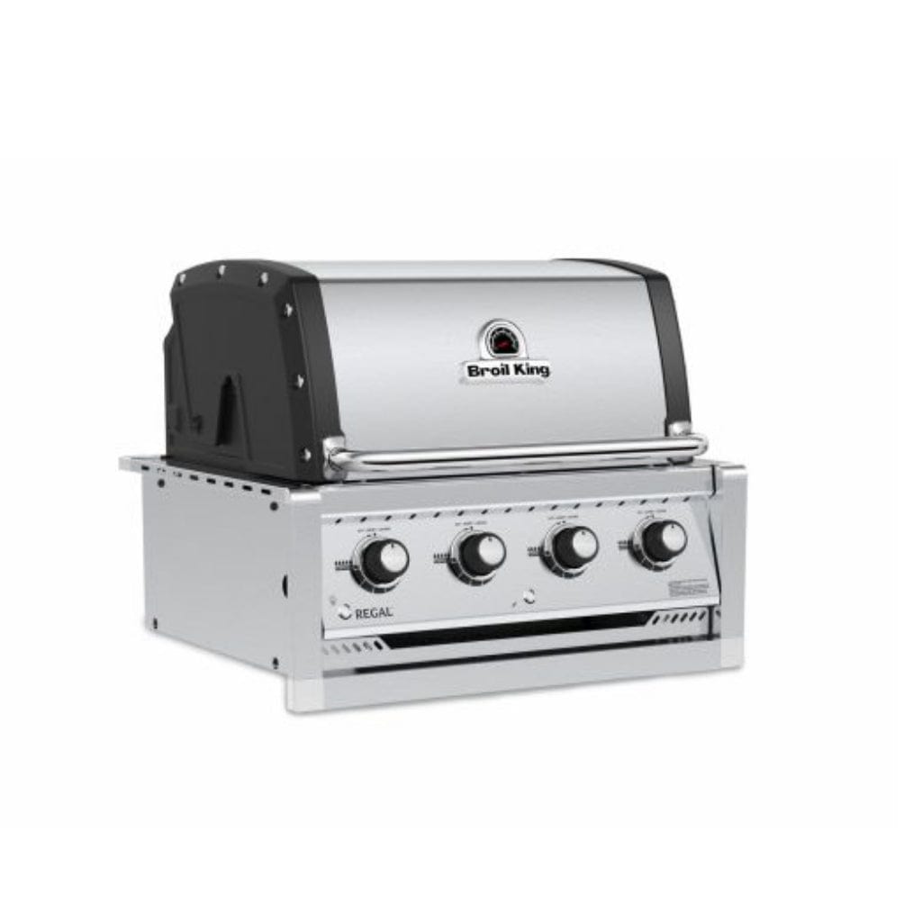 The Broil King® Regal™ S 420 Built-In features 500 sq. in of primary cooking surface and includes 4 stainless steel Dual-Tube™ burners, solid stainless steel 9mm rod cooking grids, a warming rack, stainless steel Flav-R-Wave™ cooking system, an electronic igniter, and stainless steel ignition switch.