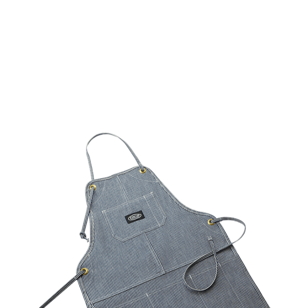 A necessity for any serious griller, this DCS apron is generously sized and features a front storage pocket and adjustable neck band. Made in America from 100% Vintage Cotton Hickory Stripe and hand finished brass findings.