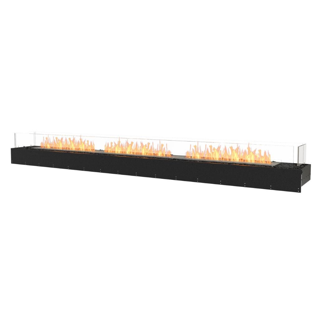 Available in a timeless black finish, Flex Fireboxes come with stainless steel burners and black glass charcoal.
