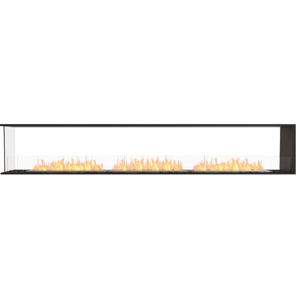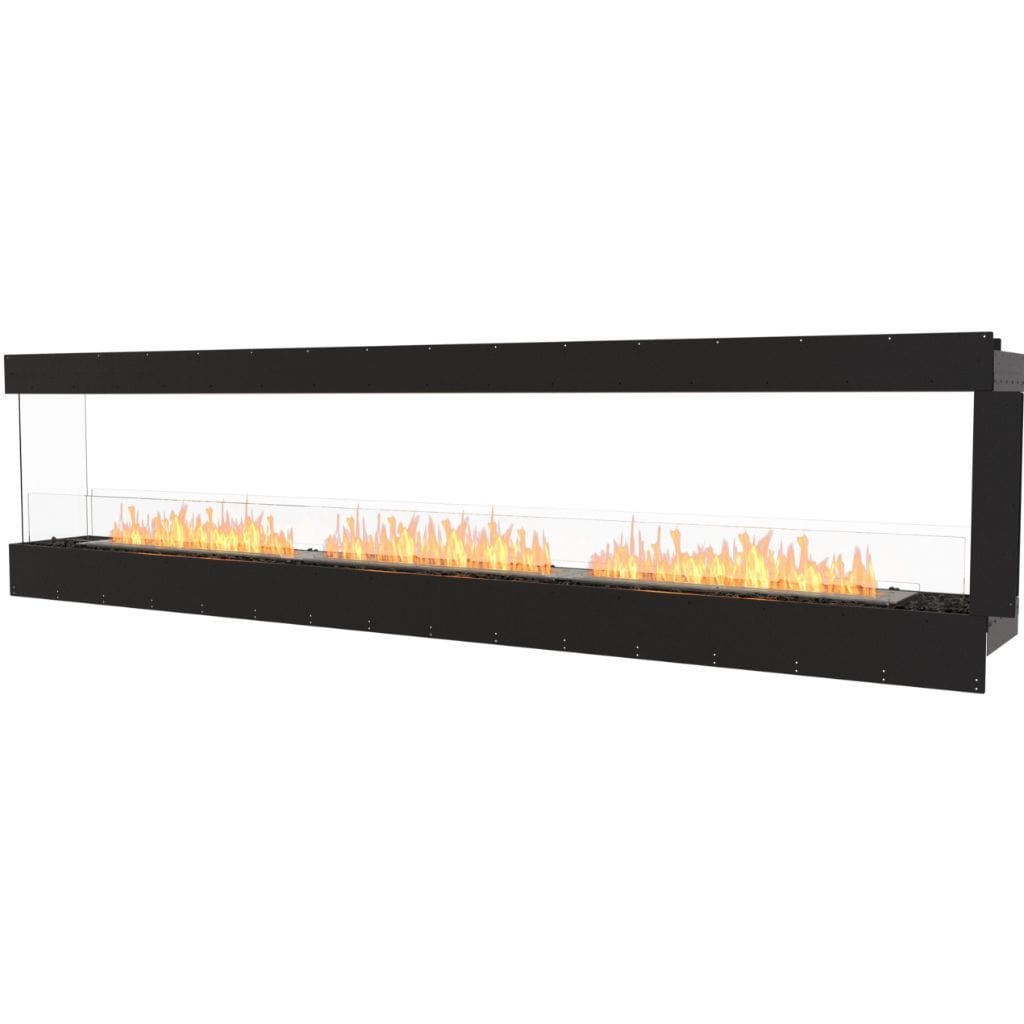 Available in a timeless black finish, Flex Fireboxes come with stainless steel burners and black glass charcoal.