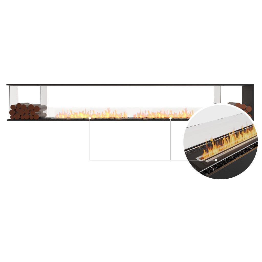 Available in a timeless black finish, Flex Fireboxes come with stainless steel burners and black glass charcoal.