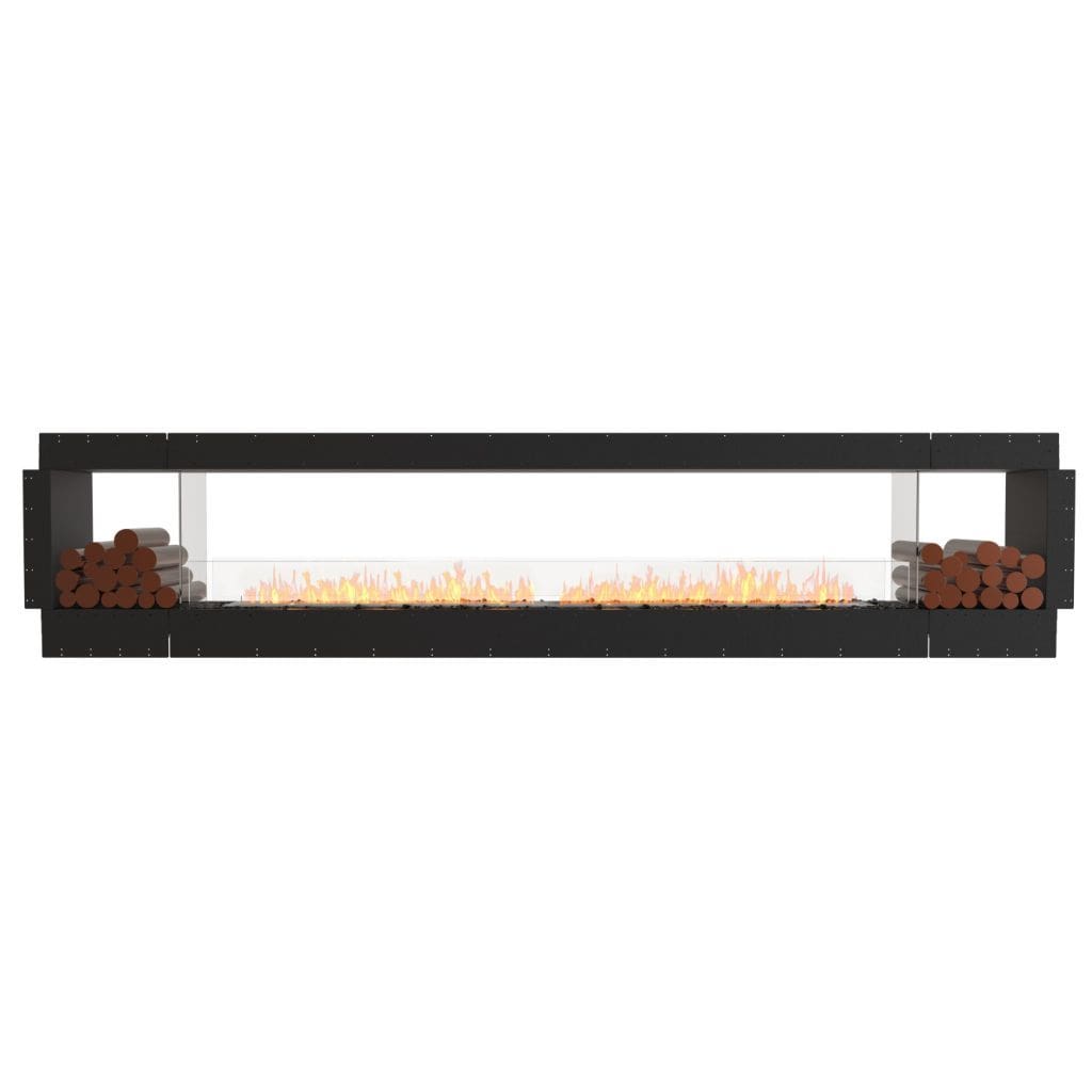 Available in a timeless black finish, Flex Fireboxes come with stainless steel burners and black glass charcoal.