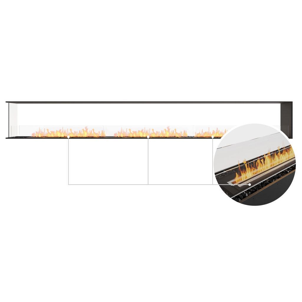Available in a timeless black finish, Flex Fireboxes come with stainless steel burners and black glass charcoal.