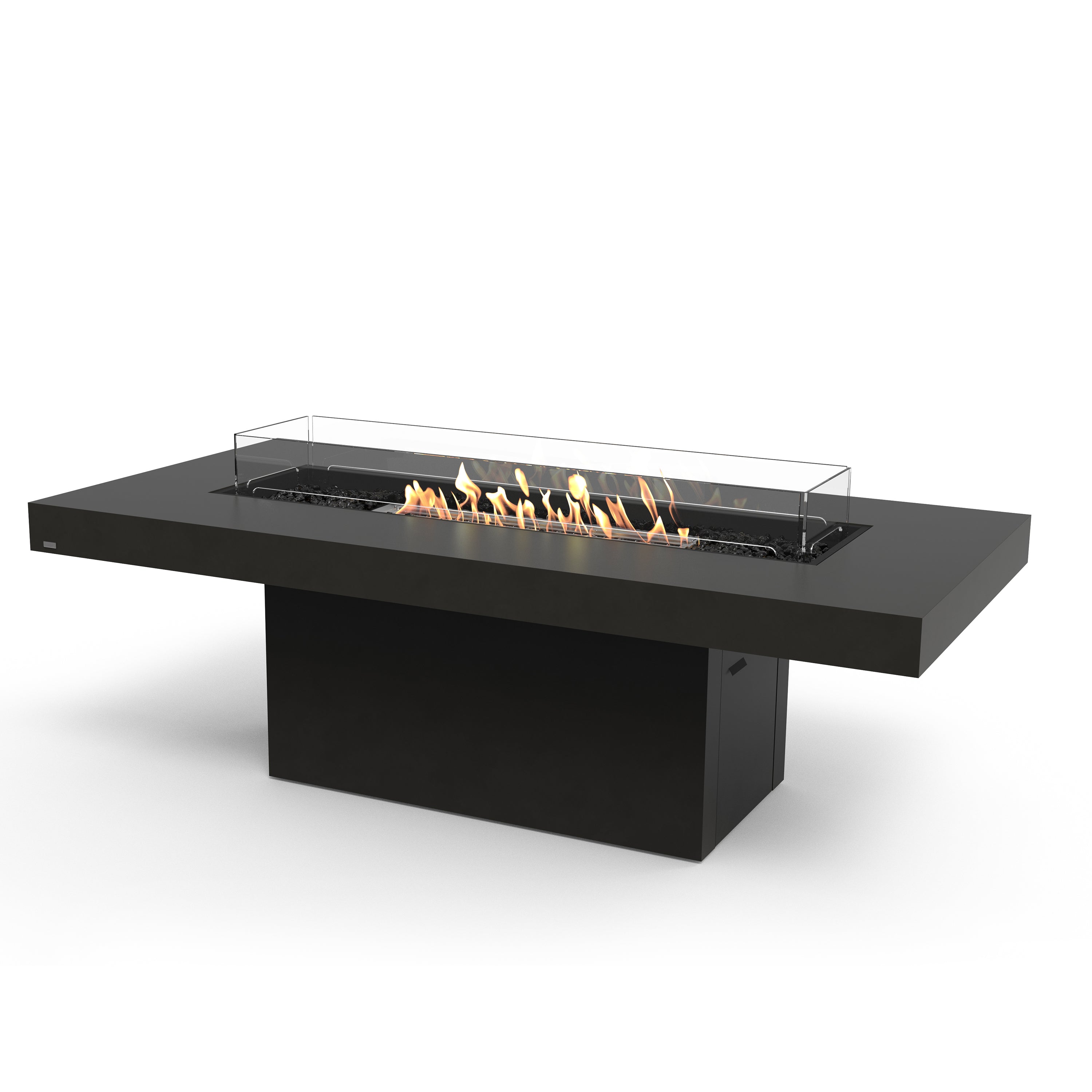Designed with room for dining chairs to be placed around the table, this stunning model features an elongated flame as its centerpiece. Available in Ethanol, Natural Gas or Liquid Propane, this fire pit table provides a fuel solution for the needs of each unique project. Gin 90 Dining fire pit table creates an impressive way to gather family or guests in an intimate and stylish setting.