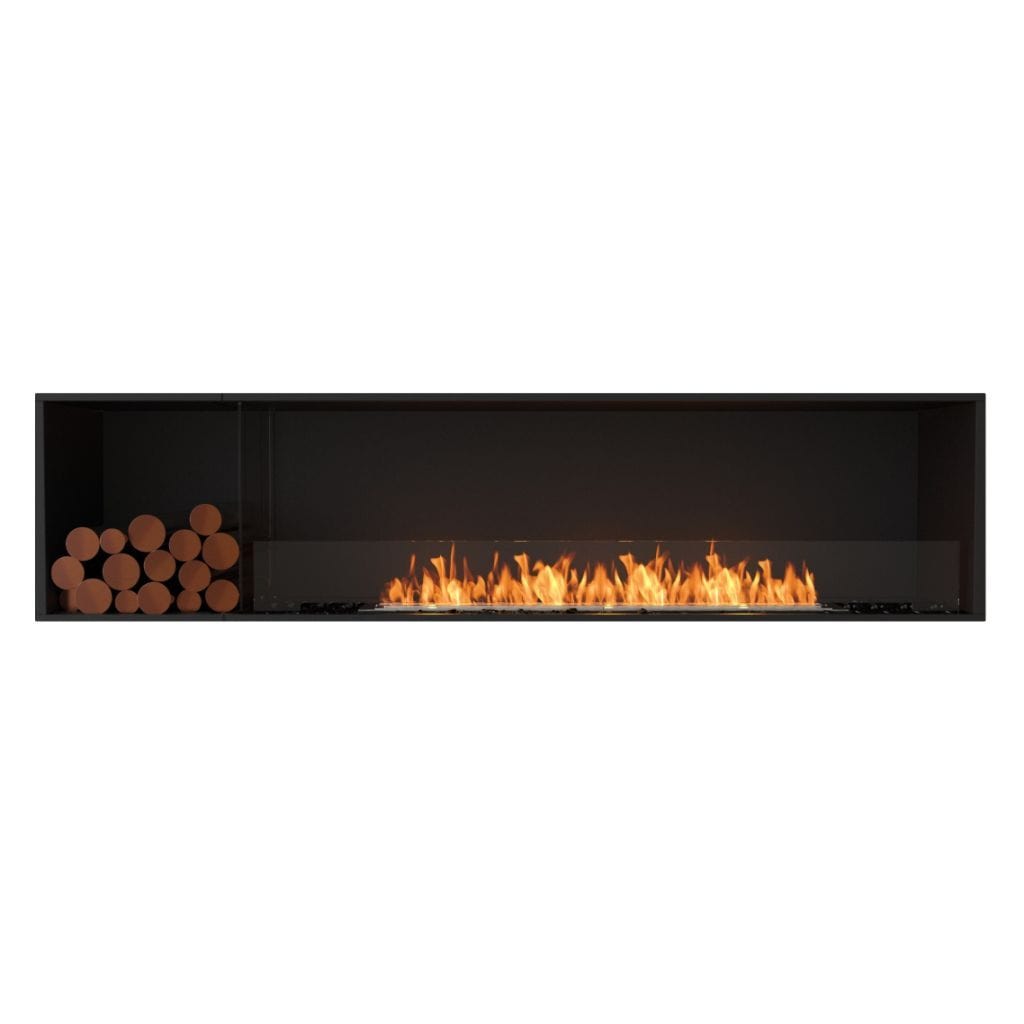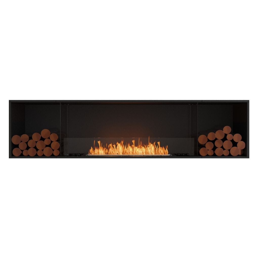 Available in a timeless black finish, Flex Fireboxes come with stainless steel burners and black glass charcoal.