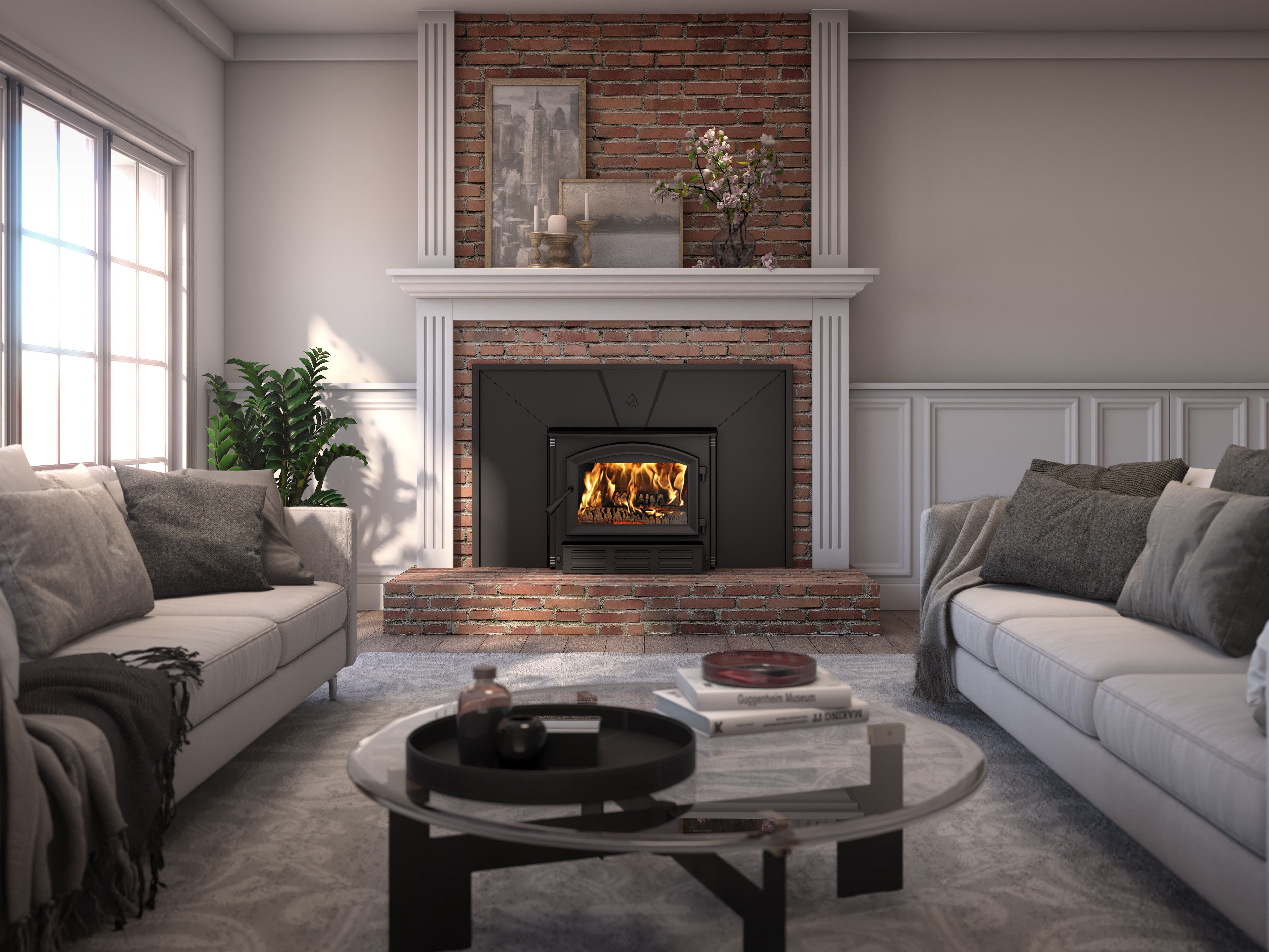 Many of its features are identical to its freestanding counterpart. Strategically positioned, a powerful heat-activated fan (144 CFM) allows an optimal redistribution of the heat produced by the firebox in the room. In addition, its design allows it to receive a faceplate whose dimensions can cover a masonry hearth with a maximum height of 32 inches and width of 50 inches. Designed for those looking for an eco-friendly and efficient stove; the best of both worlds!