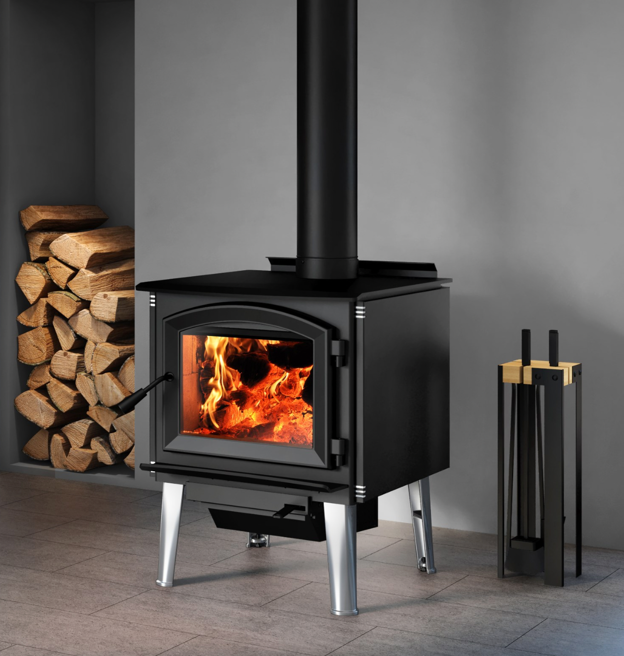 Enerzone Solution 3.3 Wood Burning Stove With Brushed Nickel Cast Iron Round Legs & Ash Drawer