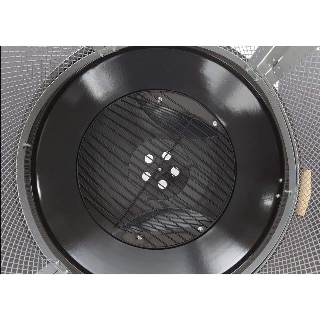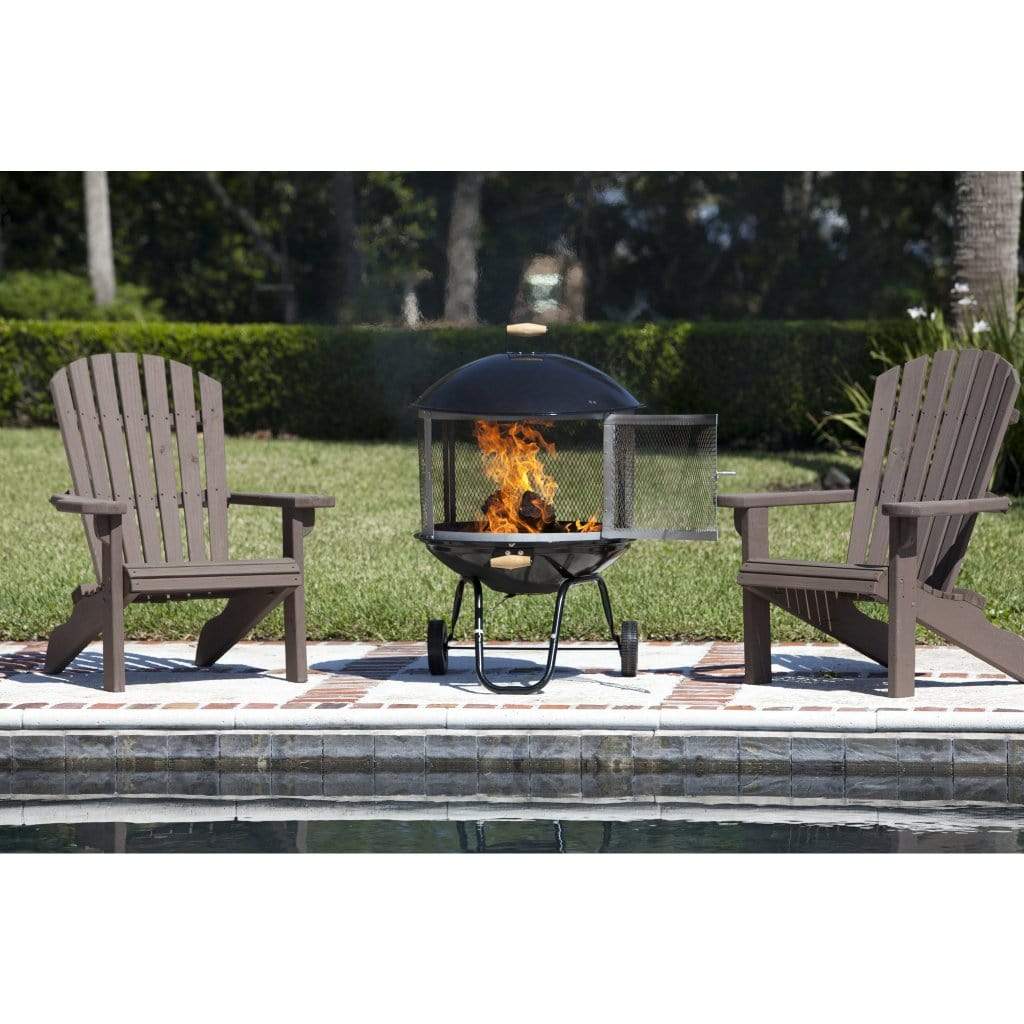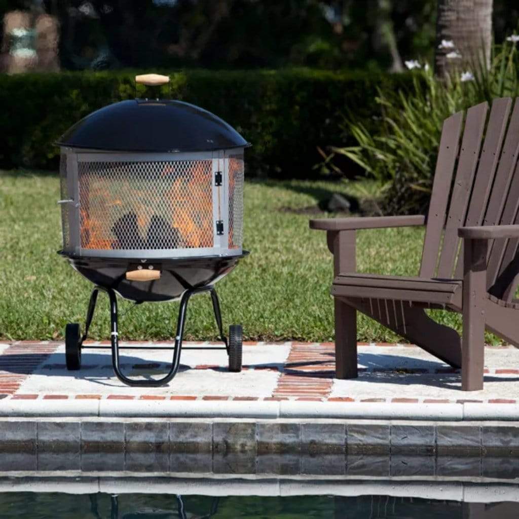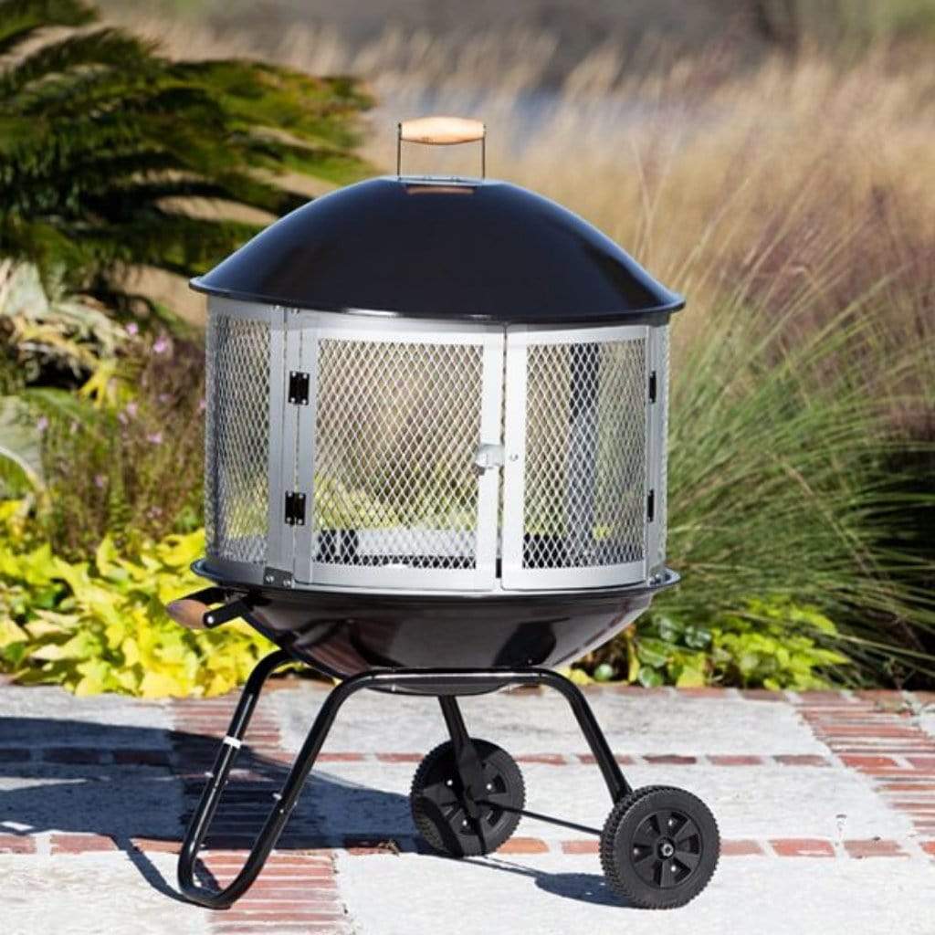 Providing the ultimate deluxe mobile patio fireplace, the 28" Bessemer Rolling Patio Fireplace has a porcelain enamel bowl and lid and a steel grate for wood. The silver high temperature painted center steel fire screen keeps the fire contained but visible. This attractive unit's center door allows easy access to the fire. The convenient wheels and handle assembly allow you to position this unique item in the perfect spot for your outdoor entertaining.