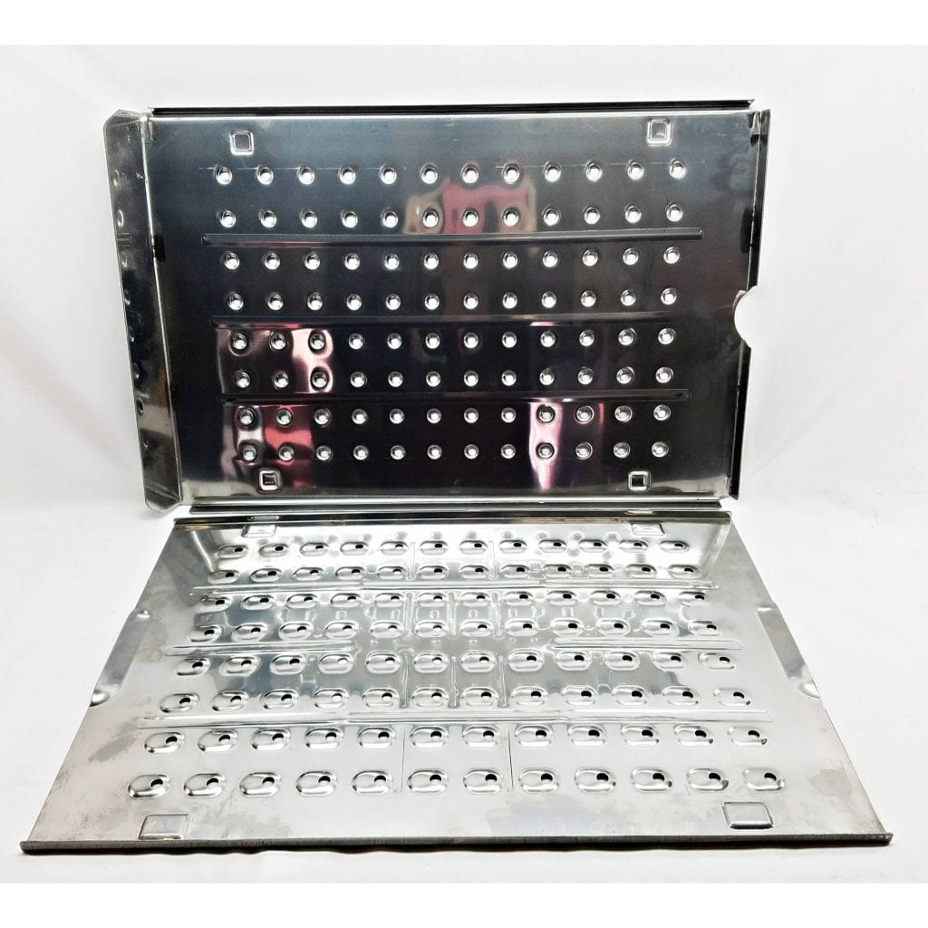 This is an open flame design stainless steel 2 piece grease drip tray. Utilize our Open Flame Technology with this two-piece Stainless Steel Grease Tray. With the ability to allow direct heat through the tray, or close it off for convection cooking, pellet grilling has never been more versatile