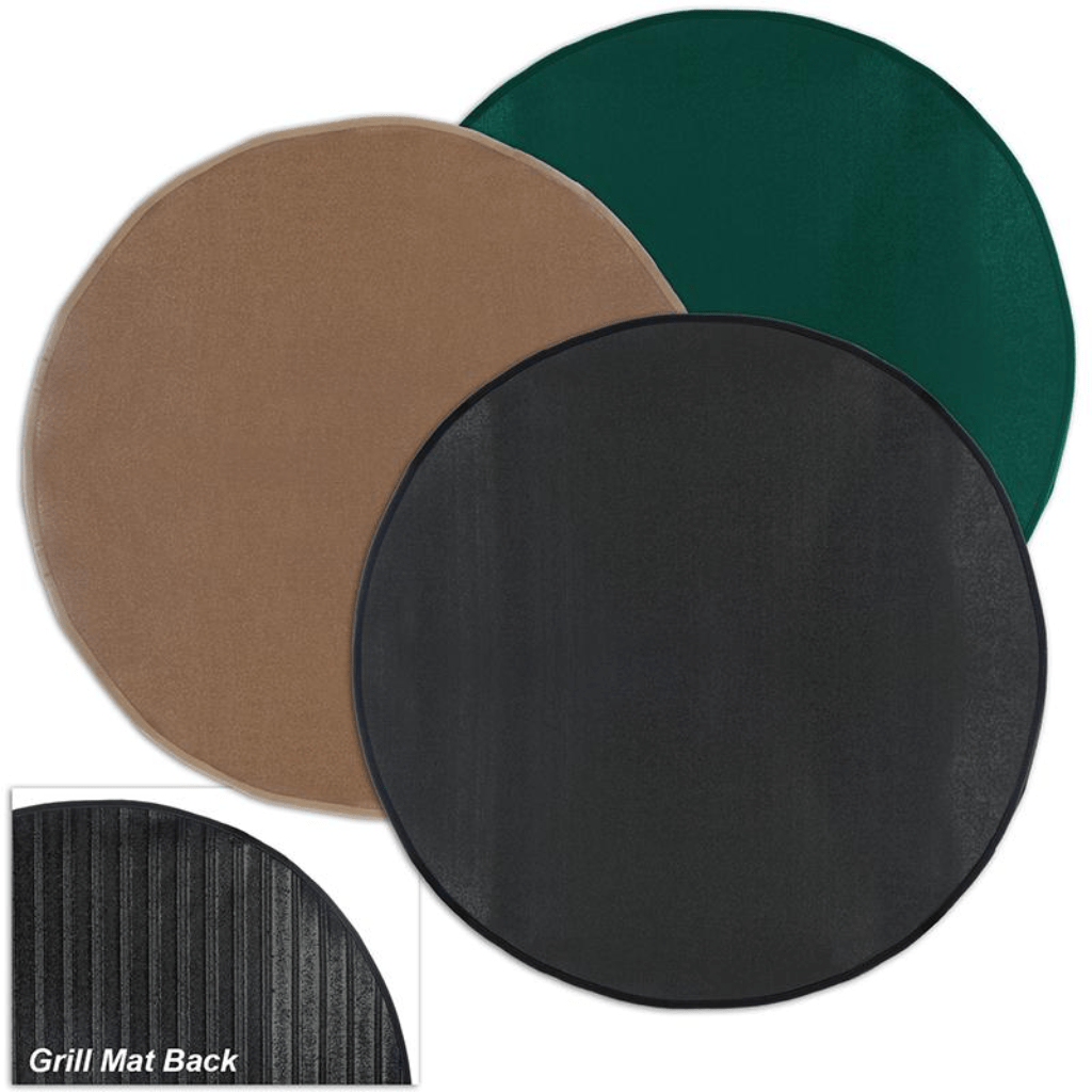 New flexible mats are used under both charcoal and gas grills to protect decks, patios, and pavers from embers, sparks, drips, and spills. Fiberglass core with high-temperature silicone rubber top and bottom. Easily cleaned, lays flat, easily rolled up to store, and does not absorb grease at all. Comes in round and rectangular shapes in three colors; black, brown, and green.