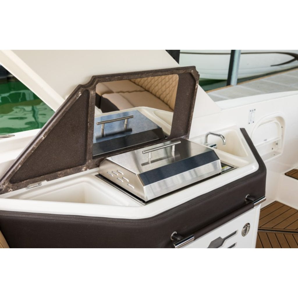The convenient top handle design allows for easy removal from the grill. With tabs on either side to keep the lid in place you do not have to worry about it coming off of the grill while your boat is underway. For those who have their grill installed in a tight area, the lid can be stored in a cabinet or drawer when not in use.