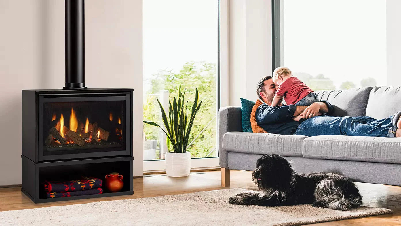 All the ambiance and warmth of a split-log fire made easy, without the mess and hassle of wood. No hearth, no mantel—just warmth and welcoming presence. Place the Ruby Freestanding Gas Fireplace almost anywhere to enjoy a large view of the fire with easy control, and style the lower space to make it your own.