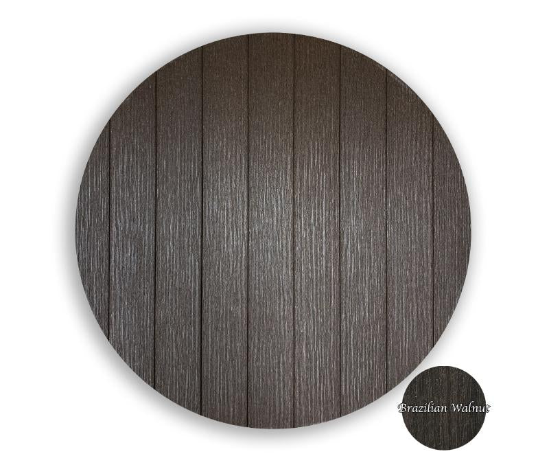 Composite Lumber - (High-Density Polyethylene) or "composite", cannot be stained or sealed. Weather-resistant. Available in: Brazilian Walnut, Coastal Gray, Driftwood Gray, and Walnut.