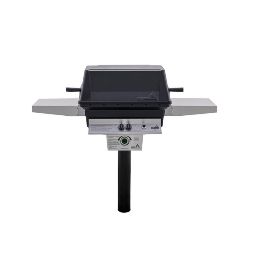 T40 commercial grill combines a one hour gas flow timer, twin 20,000 btu burners, 434 square inches of commercial grade stainless cooking grids, electronic (AA battery powered) ignition, and a WIDE VARIETY OF MOUNTING OPTIONS, including a 48” in-ground post, an aluminum post and weather proof base, and a large pedestal (available in stainless or powder coated black) with an all-cast aluminum patio base. The T40 also comes standard with two stainless steel folding side shelves. Since 1966, AEI has prided itself in providing “No Compromise Products” and “No Compromise Warranties”. This includes a 100% parts replacement for one full year on our PGS T40NG Grills. Warranty excludes misuse, vandalism, paint, scratches and surface rust.