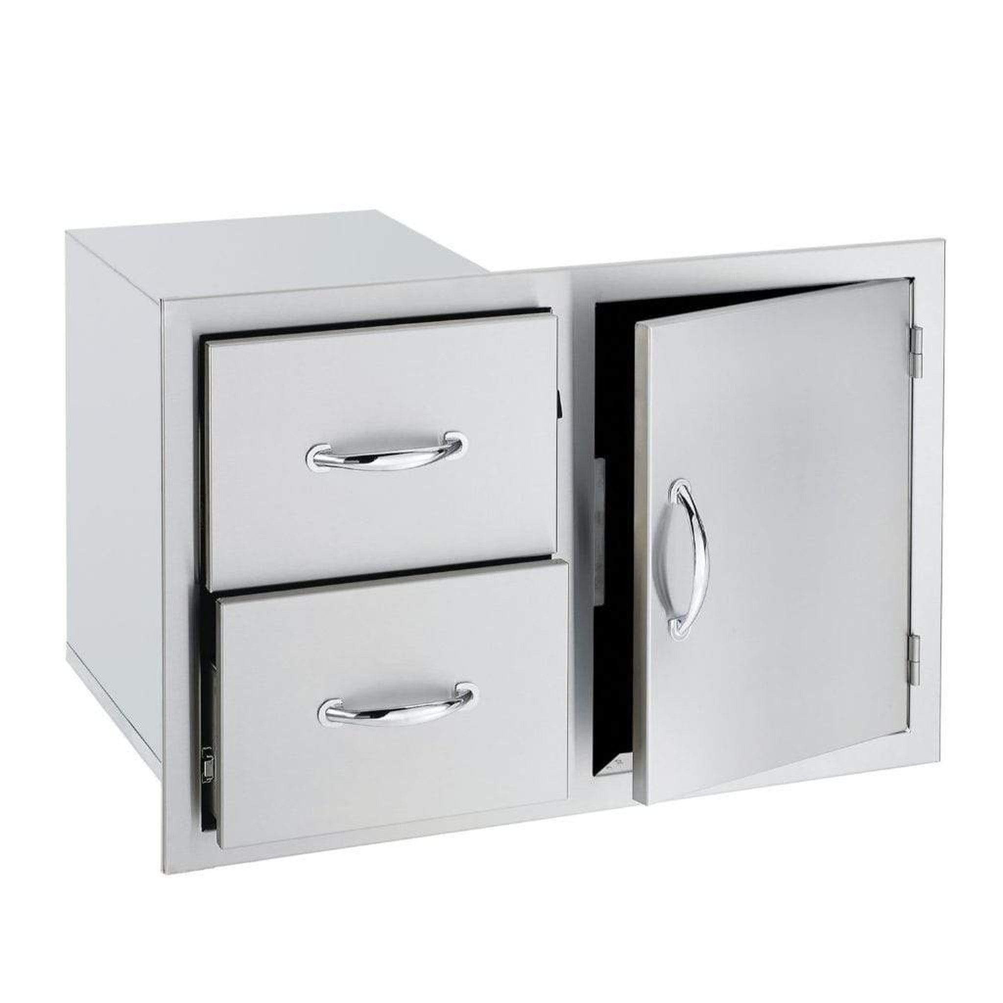 Bring efficiency and function to your outdoor kitchen with Summerset Door & Drawer combos. With multiple configurations, use our door & drawer combos to maximize the space and design of your outdoor space. Built to last, all drawers are manufactured fully enclosed with durable construction for maximum protection from the outdoors. Summerset door & drawer combos offer #304 stainless steel construction, stainless steel mounting tabs, smooth gliding on heavy duty tracks, matching Summerset handles, and limited lifetime warranty.