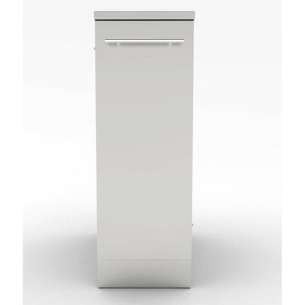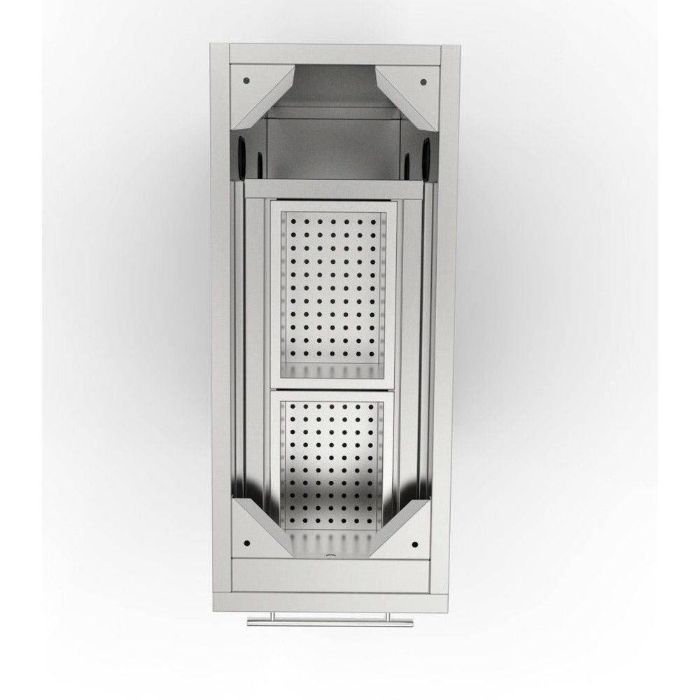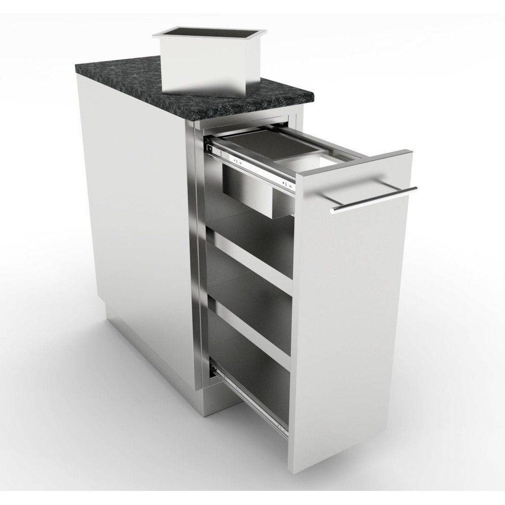 The Sunstone 12 In. full height spice rack drawer with three inner full-depth shelves and two top loading condiment baskets, which are removable for added convenience, is specifically designed to provide the perfect storage solution with clear visibility to all your stored items including, BBQ tools, BBQ sauces, towels, and cleaning supplies that would often go missing. The spice rack drawer works great next to your grill or beverage station and is the perfect space filler and solution for needed extra storage. The Cabinet is designed to blend perfectly with most other industry brands, BBQ grills and components with its even toned number 4 horizontal light brushed finishes, all 304 stainless steel construction with large 304 stainless steel rod handles.