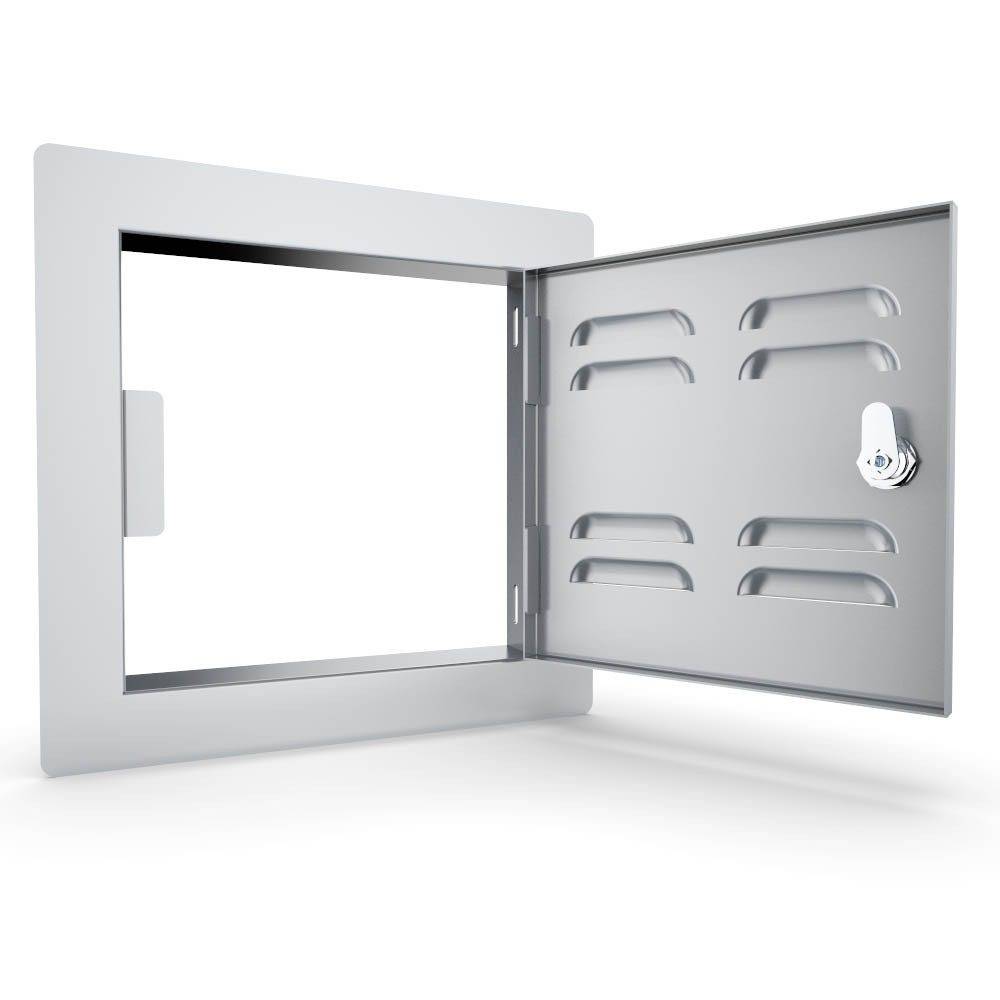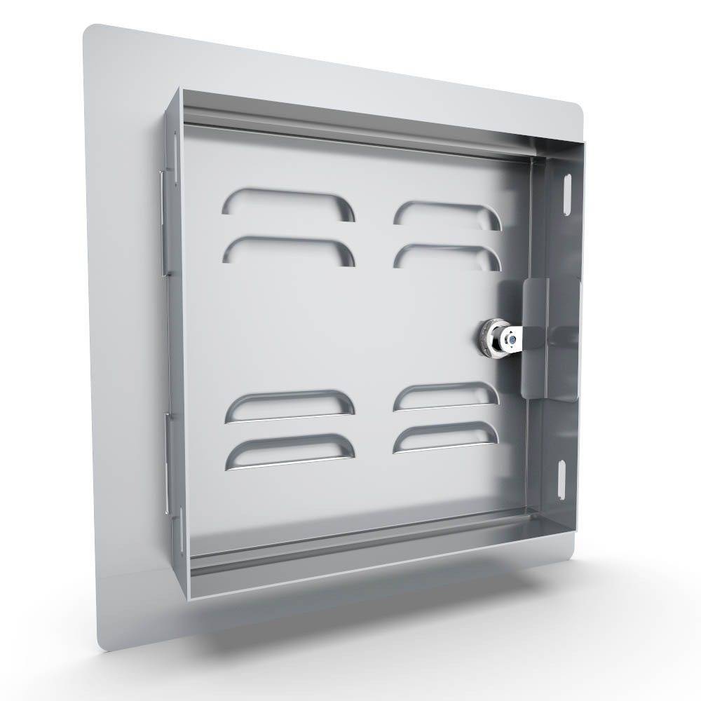 The Sunstone Classic Series Flush Style 12 In. x 12 In. Access Door is your perfect solution for Outdoor Plumbing, Gas, Electrical, or Safety Access great for multiple installation types like Dry-Wall Board, Brick, or Veneer Stone. In addition, this door is great for accessing the Bottom Vent of a Ceramic Grill and features a Turn-Latch which can be optionally replaced for a Locking Latch keeping internal components safe. The door is specially designed, so it can be turned 180 degrees allowing it to be opened either Left or Right Swing.