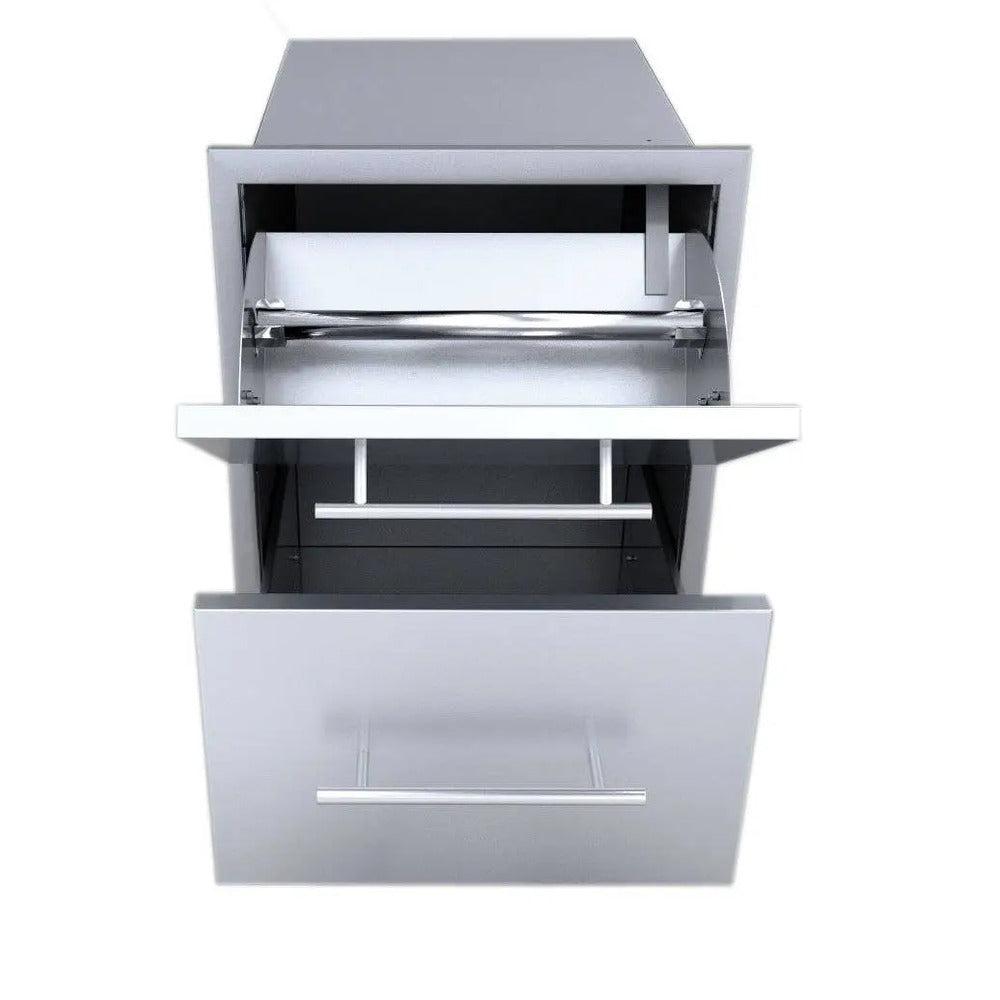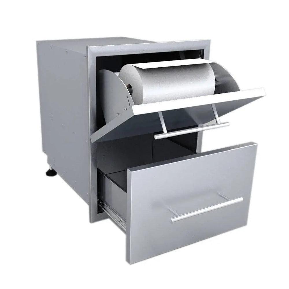 The Sunstone® Designer Series, Raised Style 2 In. Height by 18 In. Width Paper Towel Holder w/Large Single Drawer provides extra the storage space and the bonus paper towel holder on top in a weather sealed box, to store away oversized grill tools, Towels and BBQ accessories. This Paper Towel Drawer Combo is specially designed to be the same consistent 23 In. Height as all other Designer Series components – which provide a true designer friendly appeal.