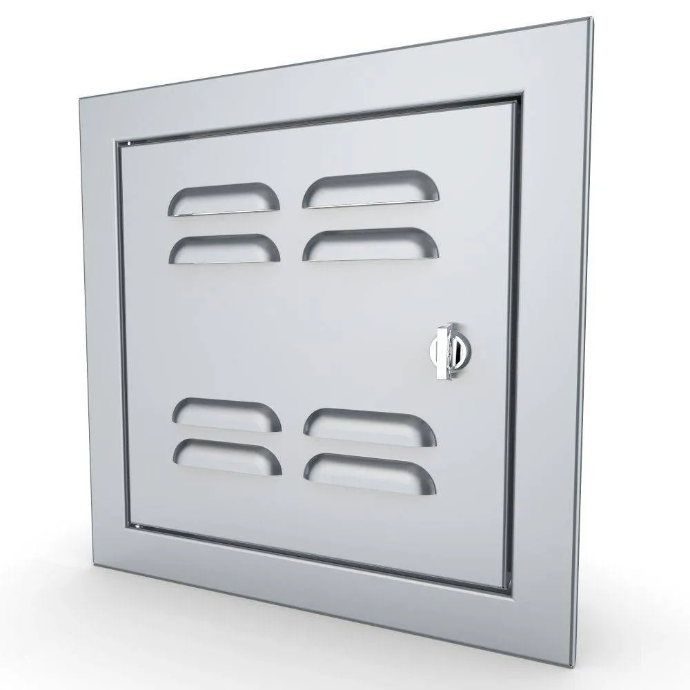 Signature Series Beveled Style Left Swing 12" x 12" Vented Access Door is your perfect solution for Outdoor Plumbing, Gas, Electrical, or Safety Access great for multiple installation types like Dry-Wall Board, Brick, or Veneer Stone. In addition, this door is great for accessing the Bottom Vent of a Ceramic Grill with its added vents provide great air-circulation, and features a Turn-Latch which can be optionally replaced for a Locking Latch keeping internal components safe. Also use this Door in Place of an Outdoor Kitchen Island Vent, providing superb air-flow or gas ventilation while giving you clear access to the internal compartment.