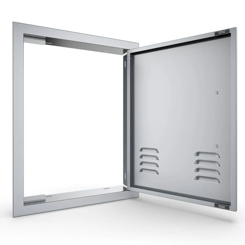 Signature Series Beveled Style Right Swing 14×20 Vented Vertical Access Doors are your perfect solution for accessing the island interior, either being large enough for a Propane Tank, Trash Bin, or Extra Storage. Perfect for multiple installation types like Dry-Wall Board, Brick, Veneer Stone or Masonry Stacked Brick Also use these Doors in Place of an Outdoor Kitchen Island Vent, providing superb airflow or gas-ventilation while giving you clear access to the internal compartment.