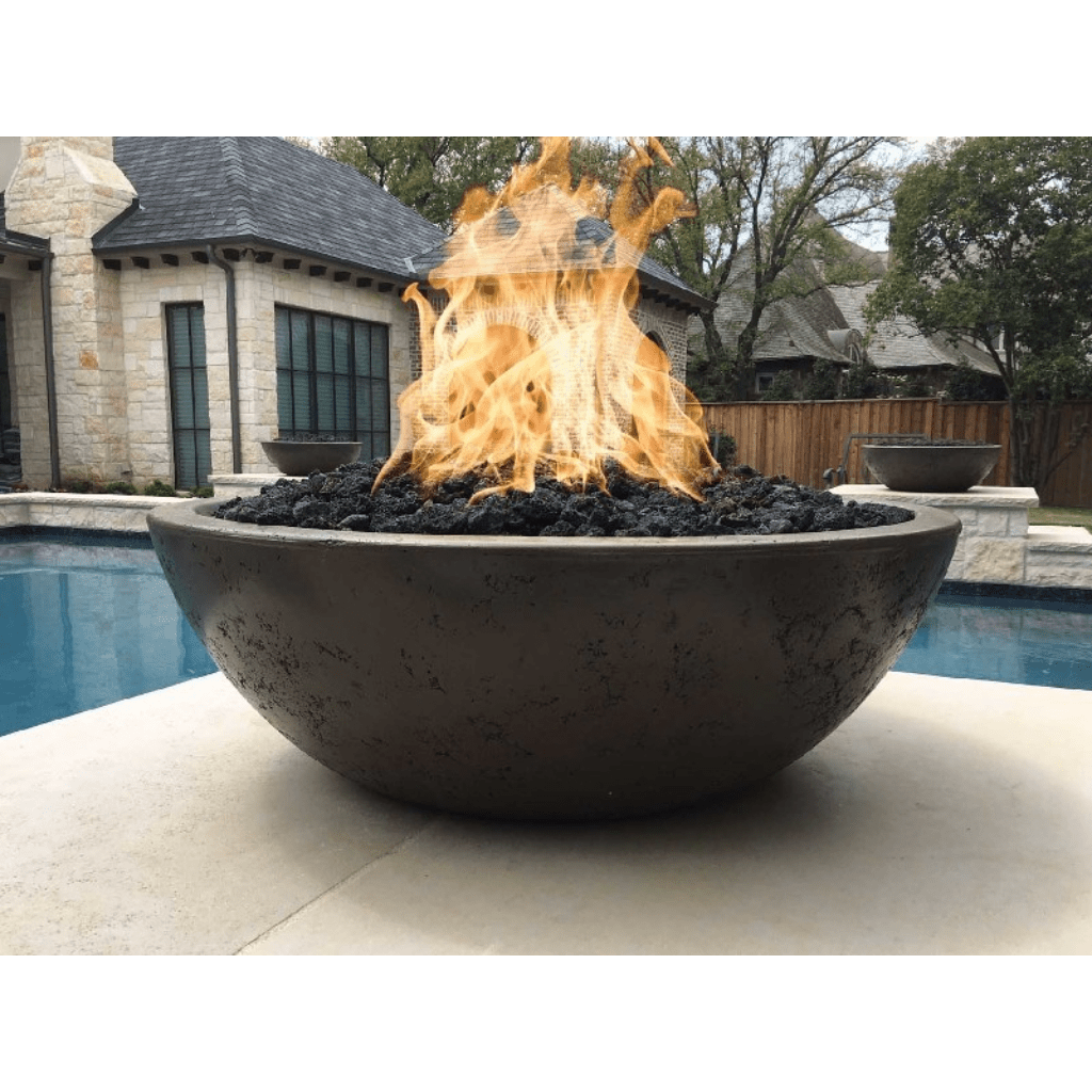The Outdoor Plus Sedona Narrow Ledge GFRC Concrete Round Fire Pit is available in Natural Gas and Liquid Propane & also available 48" and 60" sizes.