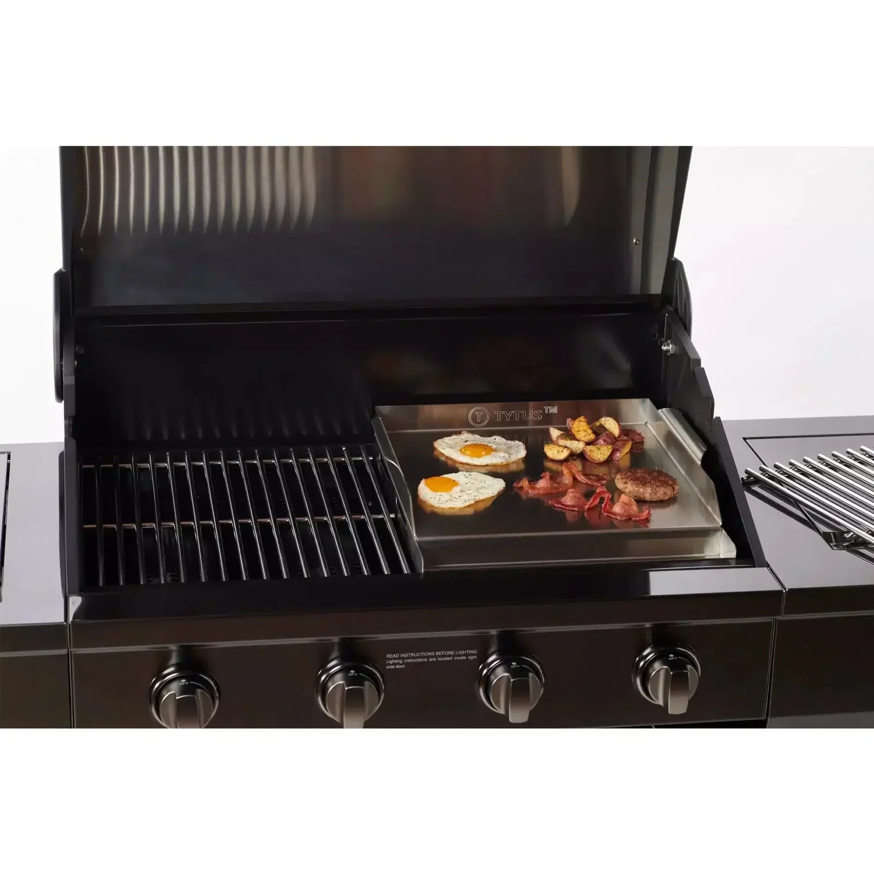 The TYTUS Stainless Steel Griddle is the perfect accessory to transform your grill into a flat top griddle. The smooth, food-grade cooking surface is ideal for pancakes, steaks, and more. The TYTUS Griddle offers you 224 sq. inches of cooking space, allowing you to cook your entire meal at once. High-side walls keep what you’re cooking on the griddle, and the built-in grease well collects excess oil for easy clean-up.