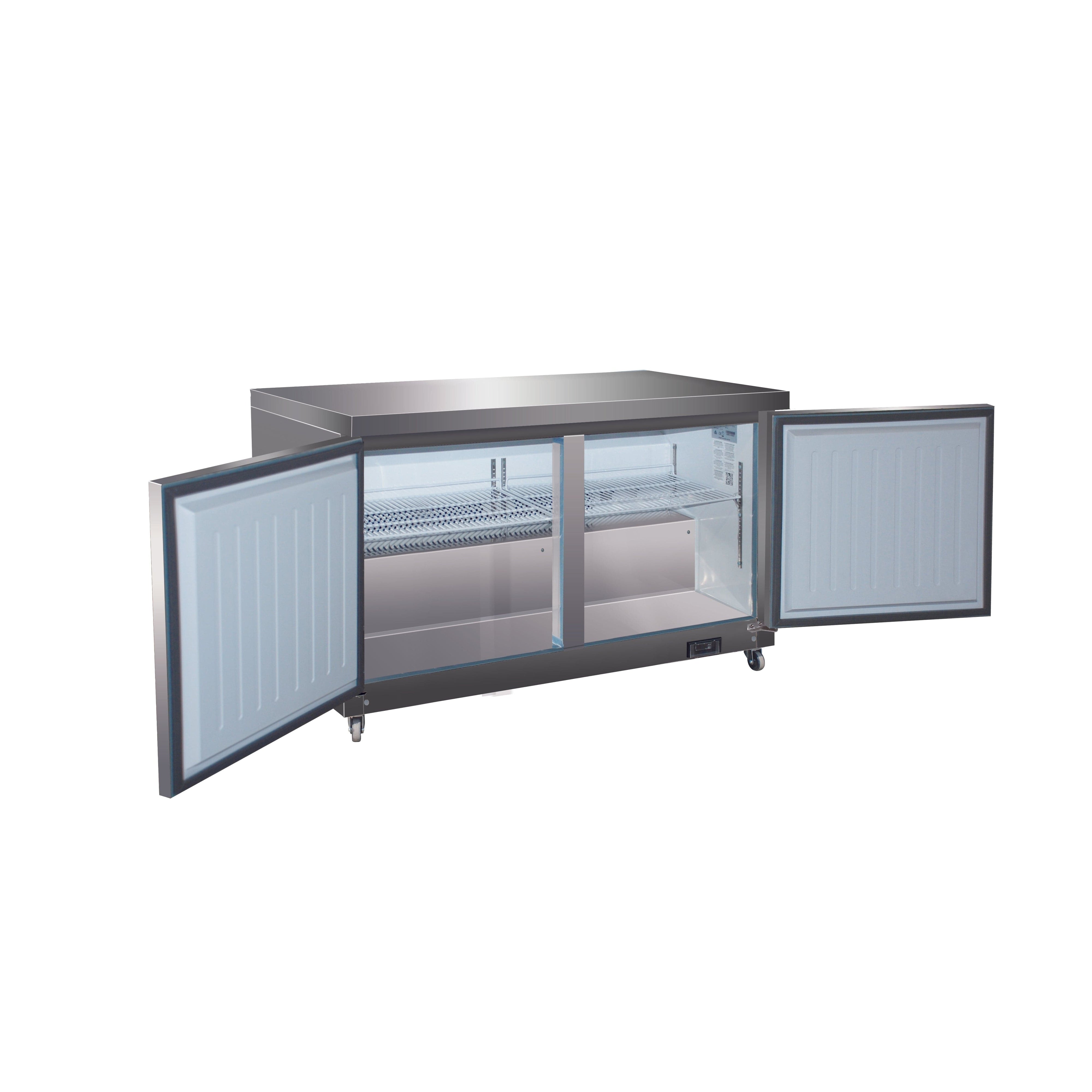 We are proud to introduce the beautifully constructed Valpro HC-VPUCF60 two-door under-counter worktop commercial freezer. Our two-door unit offers a large usable interior volume, durable stainless steel construction, and superior energy efficiency. This model will provide many years of worry-free service and delivers cost-saving eco-friendly energy efficiency with more affordable running costs. This unit utilizes an oversized balanced refrigeration system allowing faster temperature recovery and shorter run times in a busy commercial environment. This unit uses natural hydrocarbon R290 refrigerant as an environmentally responsible choice having low global warming potential and no potential for ozone depletion. All Valpro products are manufactured under strict ISO9001 standards for quality assurance, and to consistently deliver to our customers products that satisfy all expectations. All our products are operated, extensively monitored, and undergo rigorous inspection prior to packaging and shipping.