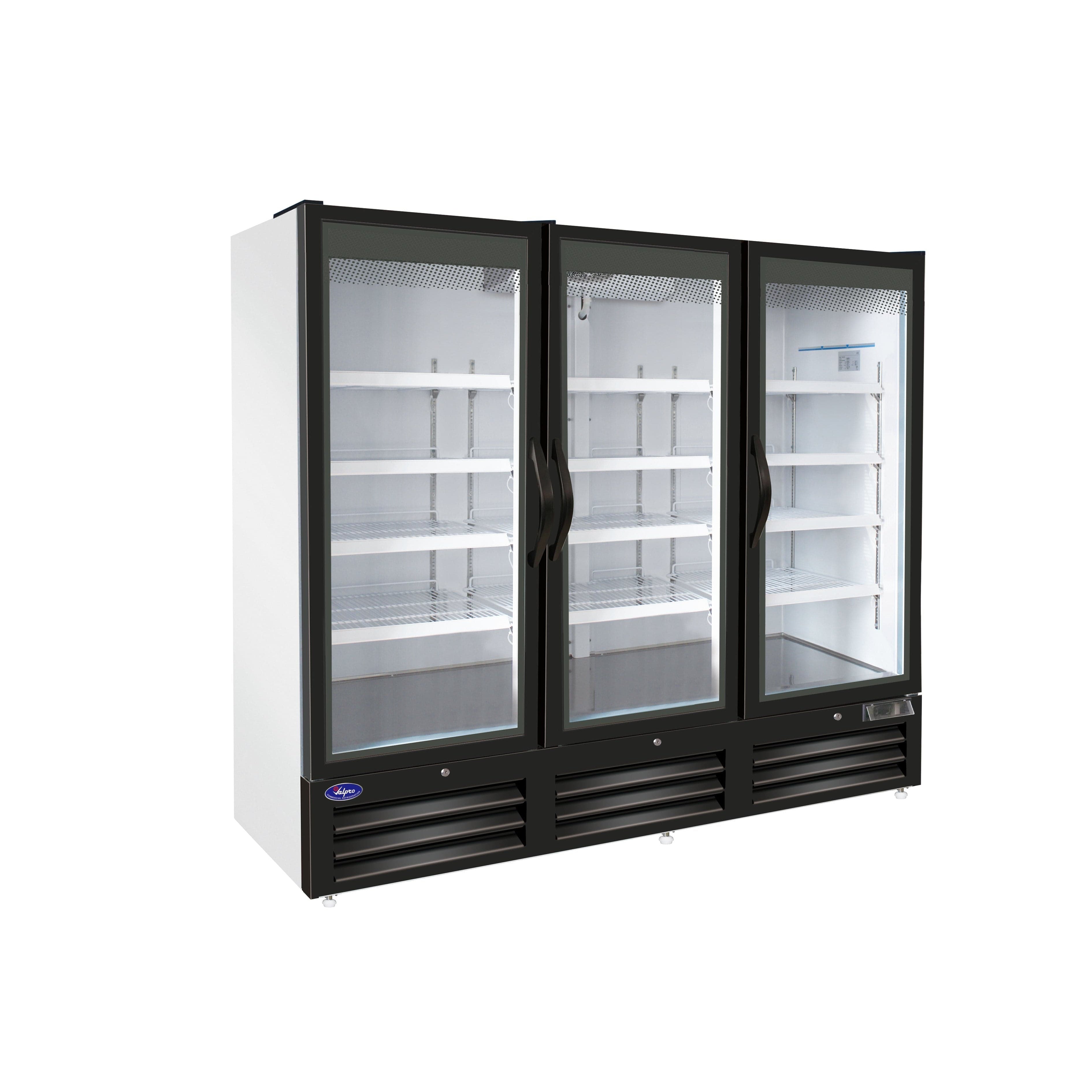 - Energy-saving vacuum-insulated triple pane low E-glass heated doors with heat-reflecting film
