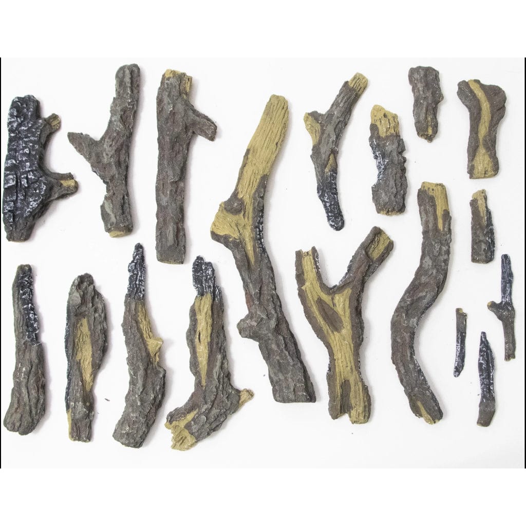 Introducing the Amantii Electric Fireplace 18 Piece Oak Log Set with Deluxe Media Kit that Includes: 18 logs, stones, pebbles & embers