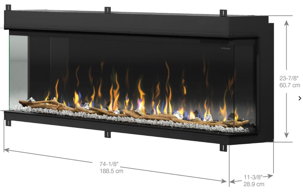 Fireplace Dimensions: 75 5/8" W x 23 7/8" H x 12 1/8" D