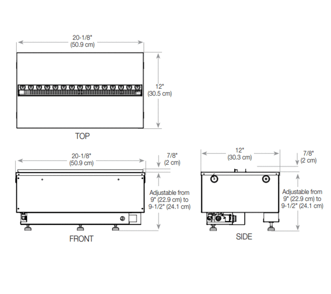 - Dimensions: 20" W x 9" H x 12" D