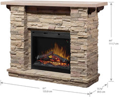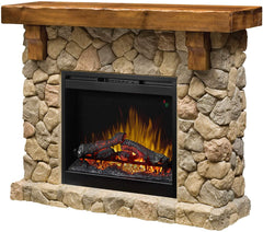 The Fieldstone electric fireplace mantel package offers a stunning style and good looks. With its stone-look and hand-hewn pine finish, they give rustic charm that works in cottages or cabins and even in modern homes.