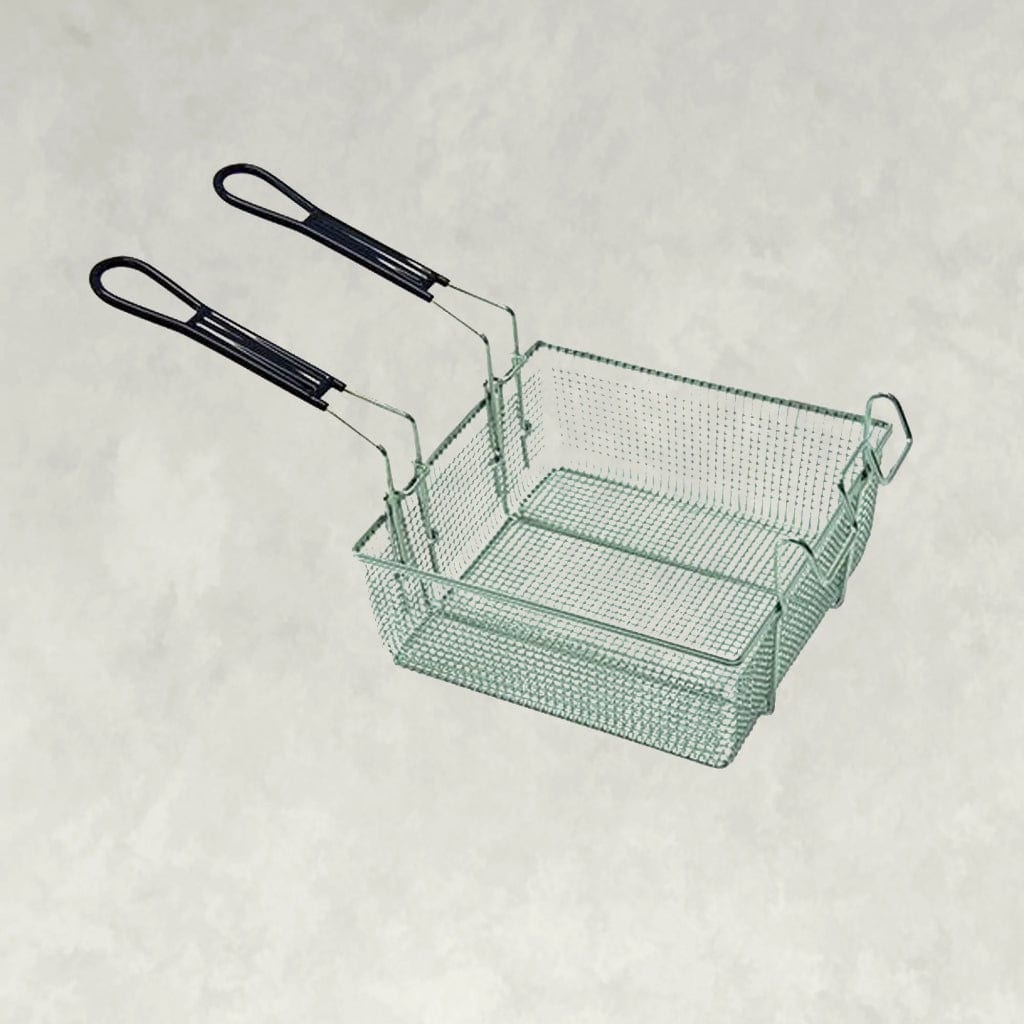 The Double Fryer Basket is the perfect way to fry large batches of fish, chicken, shrimp, onion rings, fries, and hushpuppies. Constructed of stainless steel wire mesh with two cool touch handles that detach for easy storage.