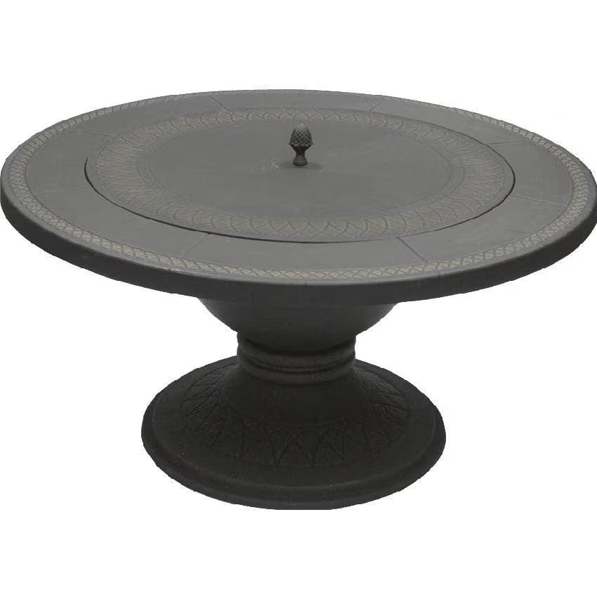 • Includes 42-inch cast aluminum table top, 30-inch diameter spark screen guard, 13.75-inch diameter black steel log grate, 24-inch log poker, and vinyl cover