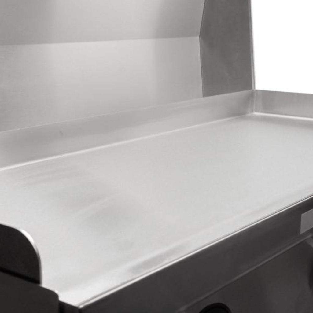 Features & Benefits. The cast iron plate accumulates the heat then transfers it to the stainless steel for perfect heat distribution on the whole surface, reducing gas consumption.