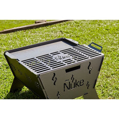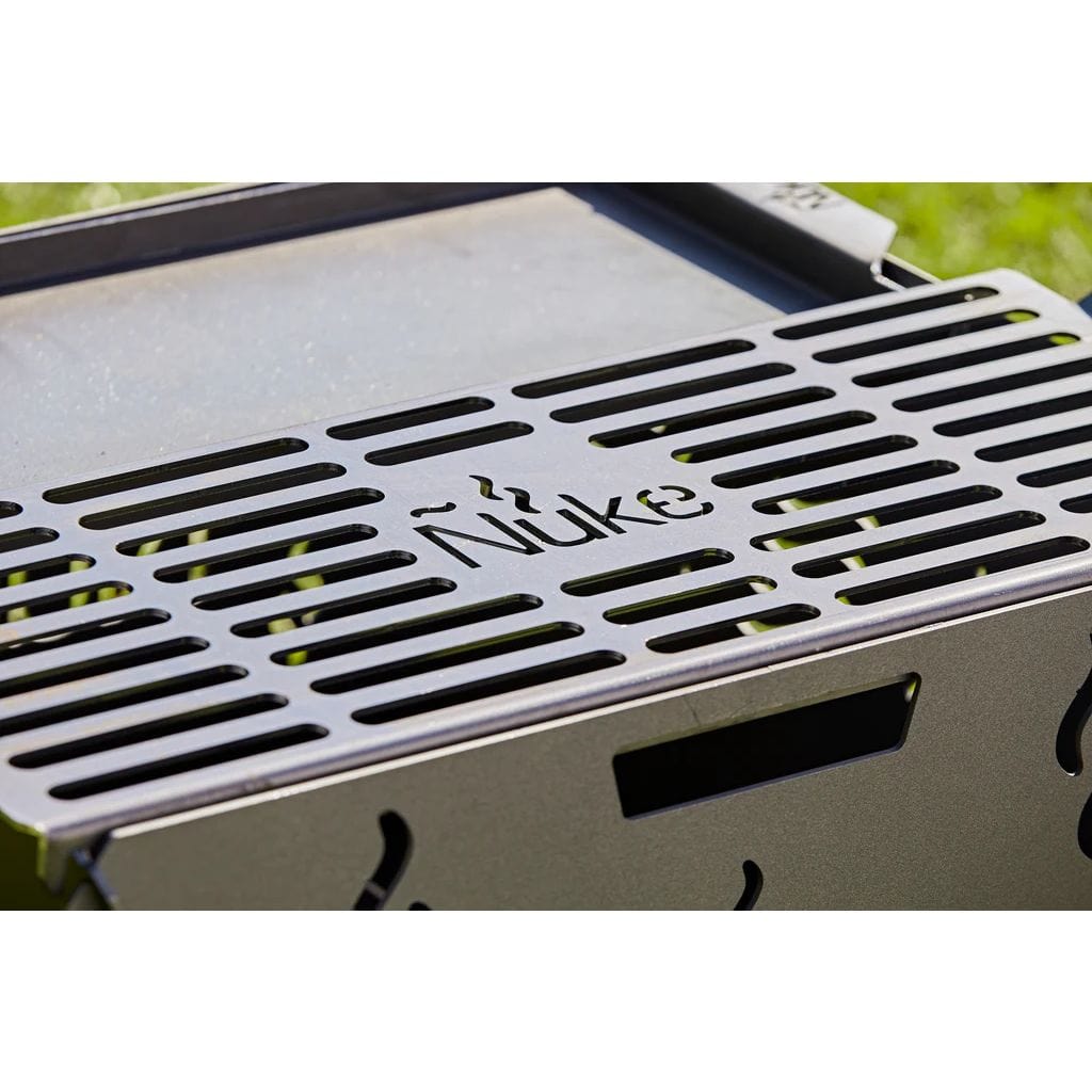 The Huapi 50 is fabricated from durable 1/8” powder-coated steel to withstand high heat and repel corrosion. The collapsible fire pit/grill is easily assembled without the need for hardware or tools and can be stored flat when not in use. Shipped with two half grill grates, the Huapi quickly transitions from firepit to grill. Each grill grate includes a grooved channel that fits snuggly on top of the pit to keep the grates in place while allowing them to slide back and forth across the pit.