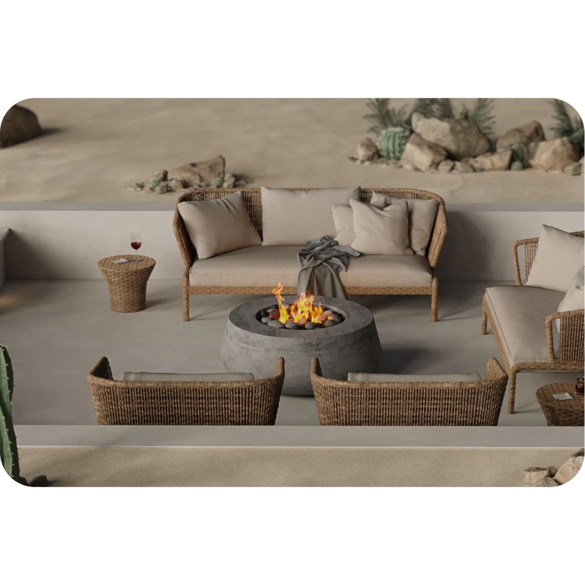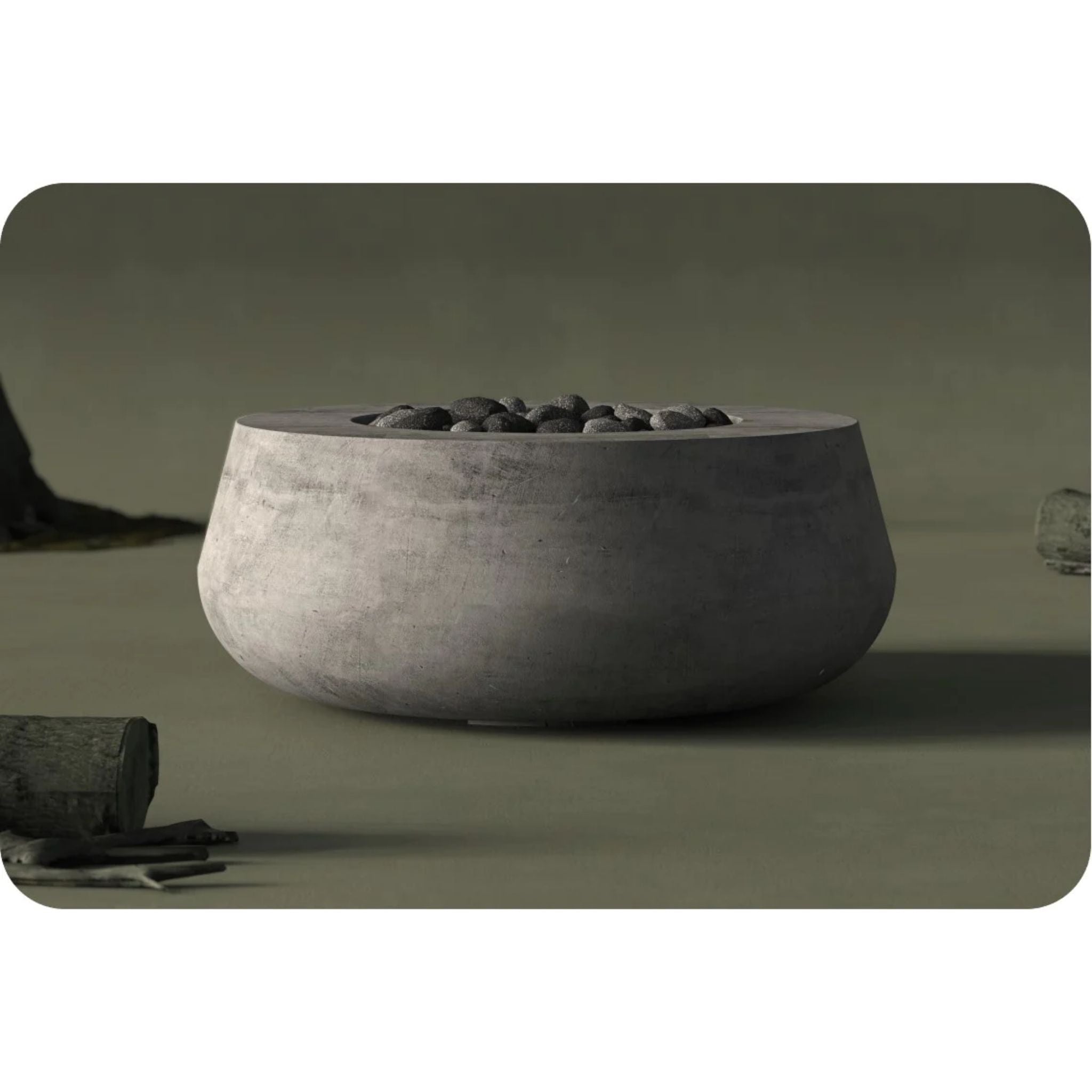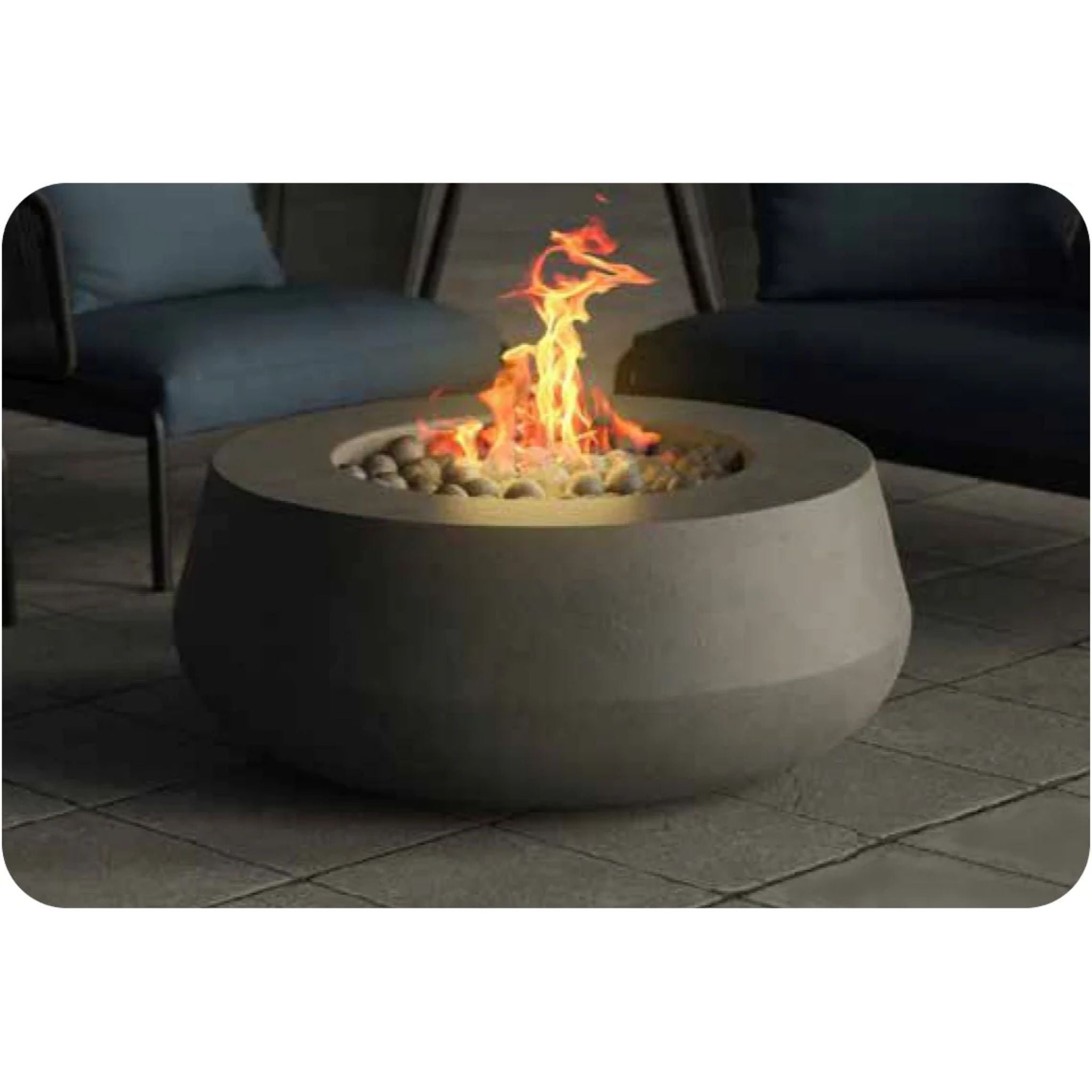 The fire pit is one of the coolest features you can add to your backyard paradise. The Oasis Fire Table with it's unique curved base provides an outdoor retreat of warmth and ambiance. Each bowl has been hand-crafted using our custom patina finishing process, guaranteeing a one-of-a-kind creation with subtle variations. Available in 6 Glass Fiber Reinforced Cement (GFRC) colors the 42" diameter table provides a beautiful and functional centerpiece for any backyard, patio or lounging area. The ambient heat provides plenty of warmth for multiple people. The 65,000 BTU unit operates with both a standard propane tank or Natural Gas hookup. The included key valve housing is easily accessed from the side of the unit. The controls are clearly labeled and simple to use. Turn the key to the on position and use a match lighter to light and enjoy.